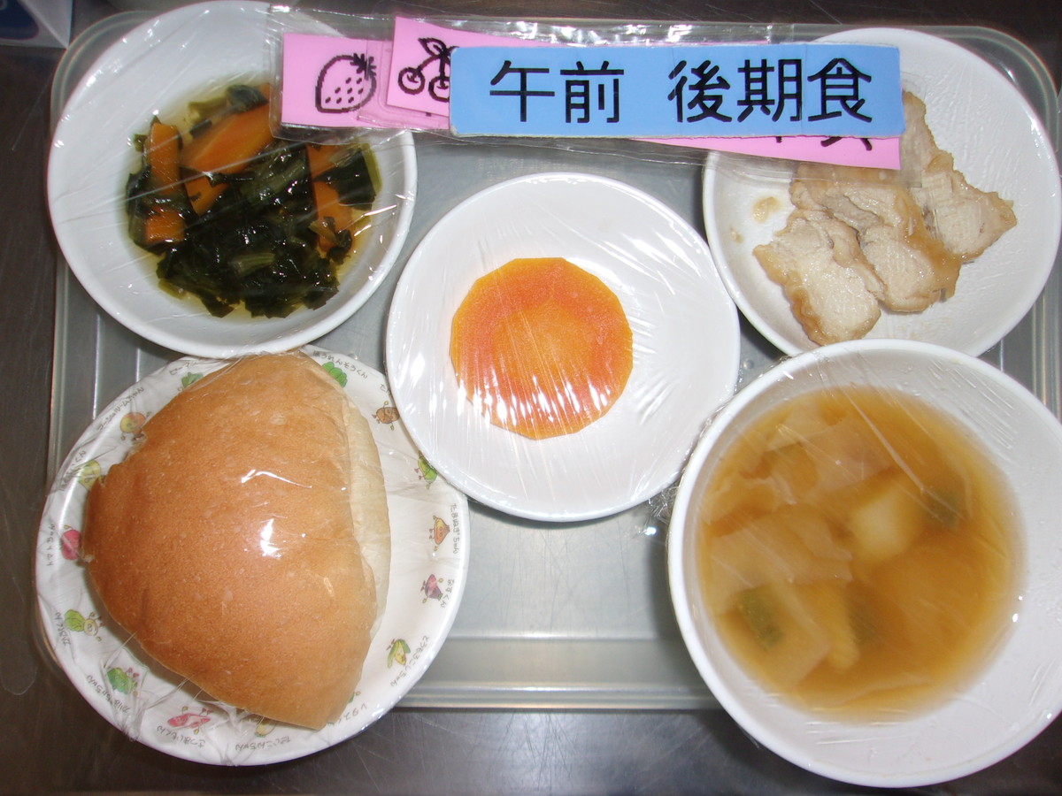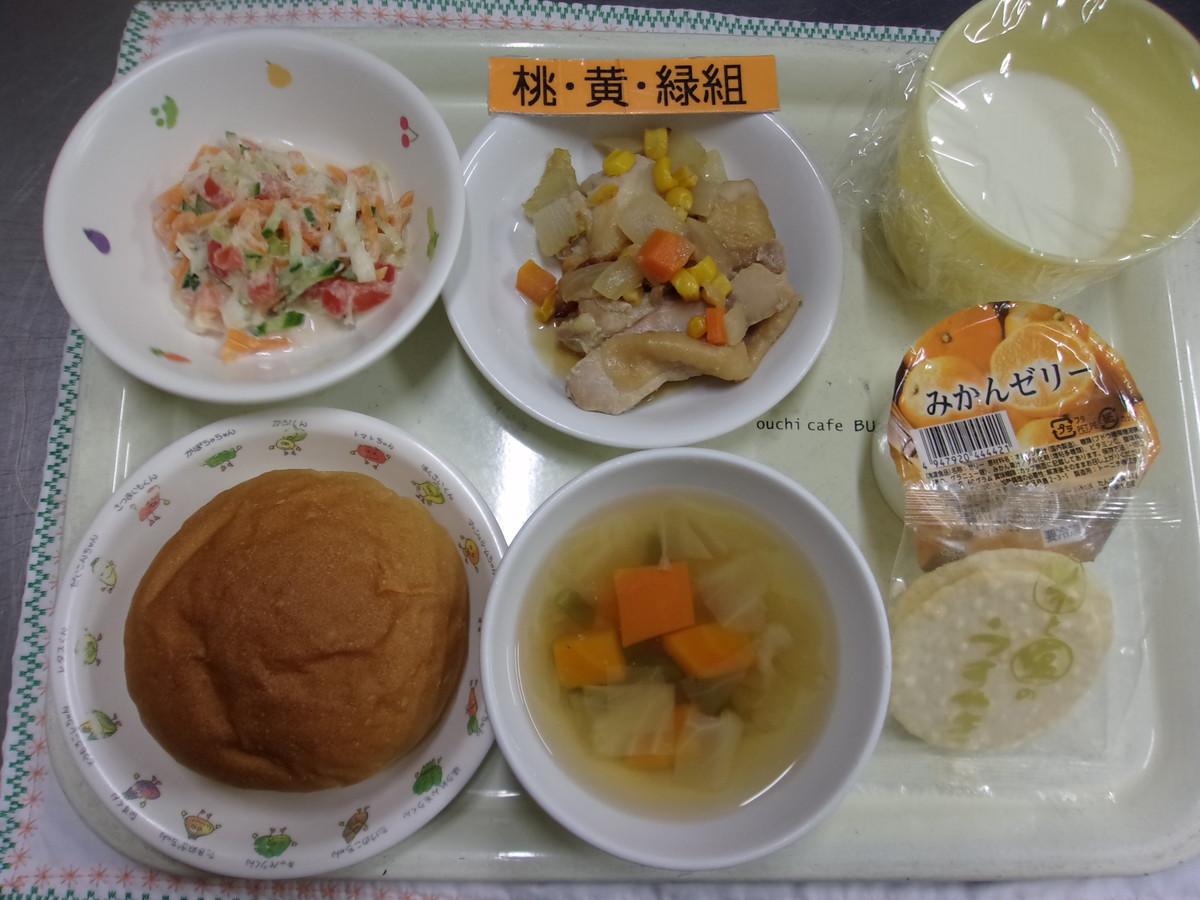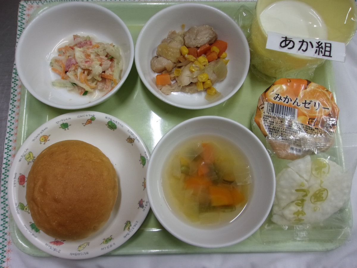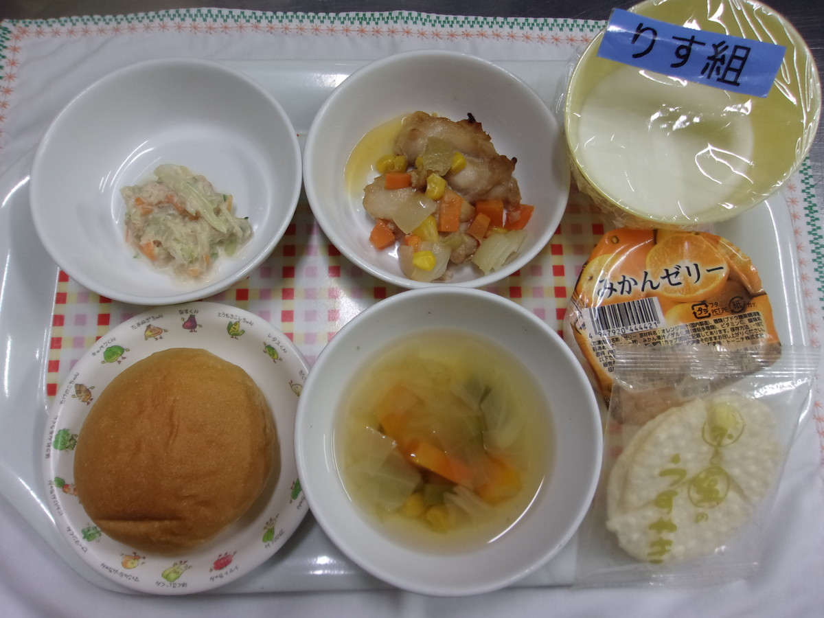 ロールパン 鶏肉コーンオーブン焼き ツナサラダ コロコロスープ