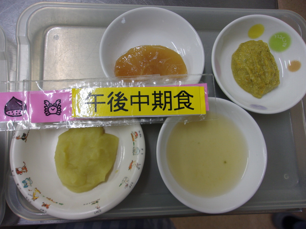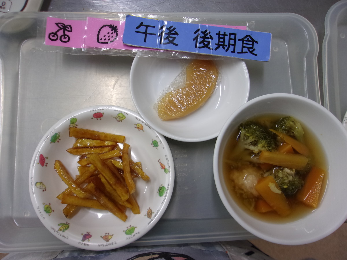 3時のおやつは 牛乳 ゼリー せんべいです。