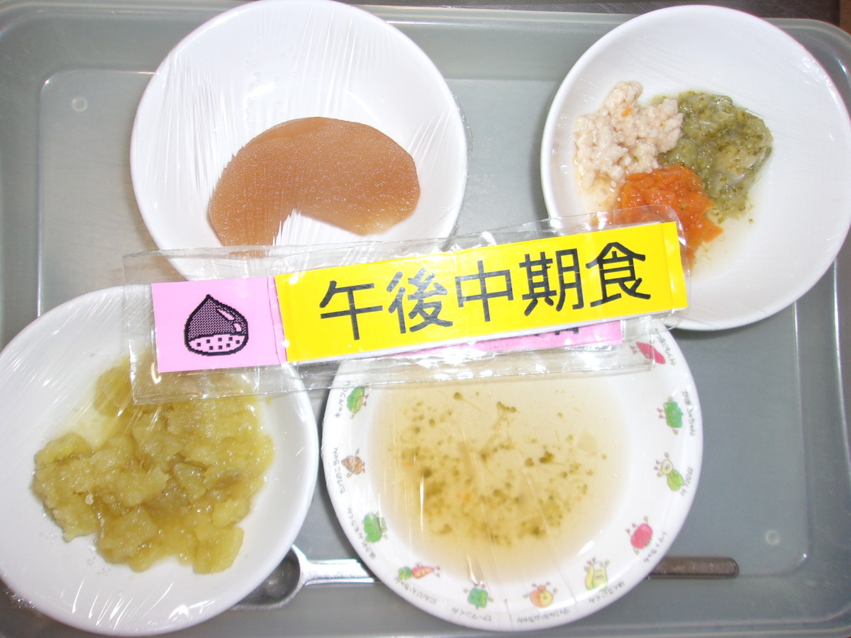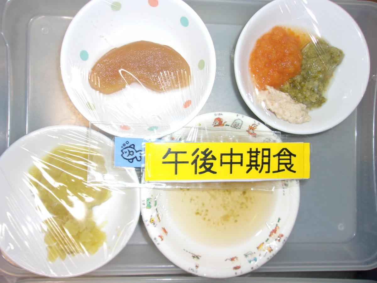 3時のおやつは白ブドウほうれん草 ごへいもちです。