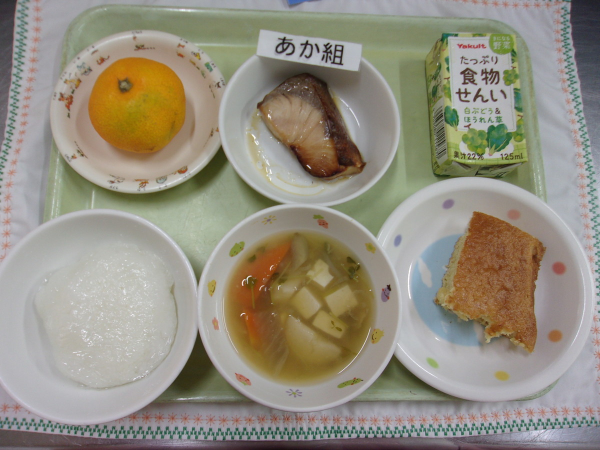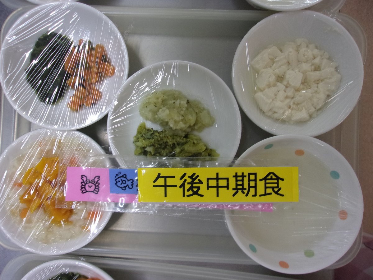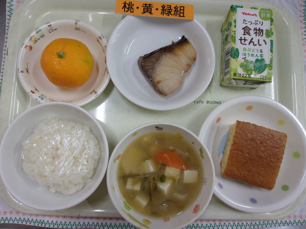 3時のおやつは 白ブドウほうれん草 ホットケーキです。