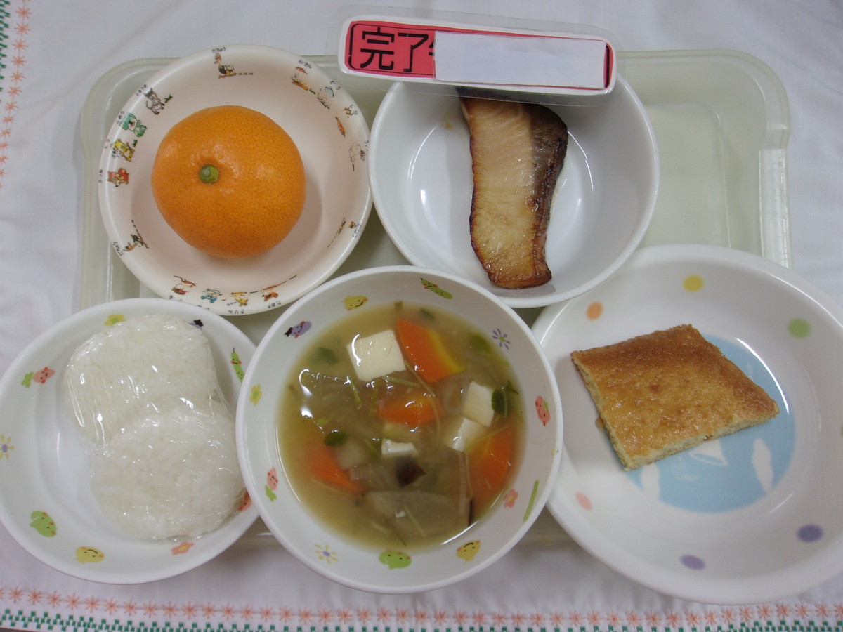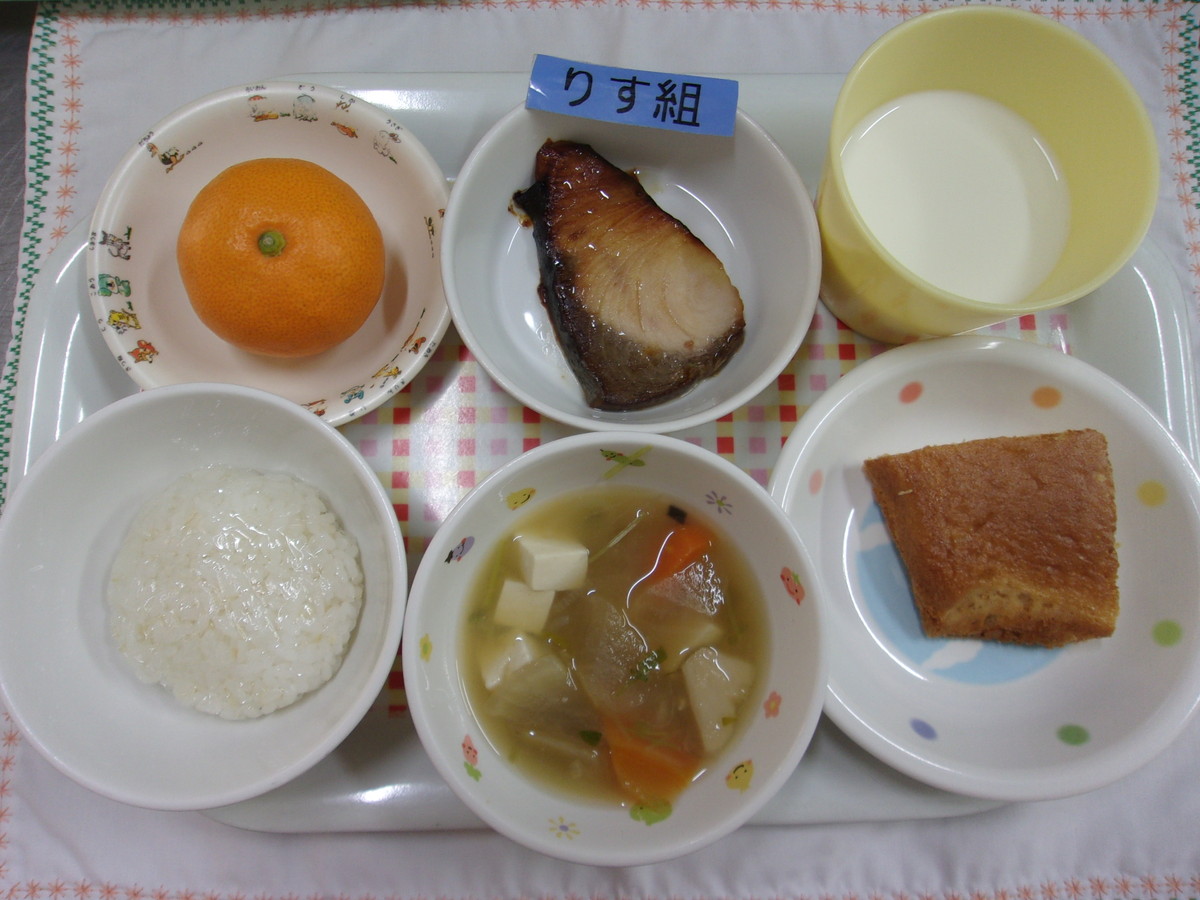 ごはん ブリの照り焼き たっぷり味噌汁 みかん