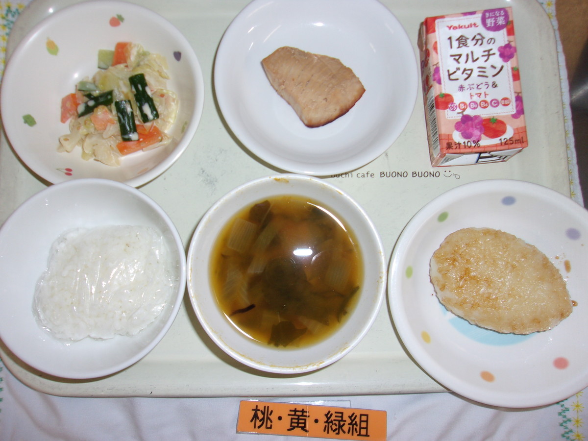 ごはん ぶり照り焼き 野菜味噌マヨネーズ かぼちゃの味噌汁
