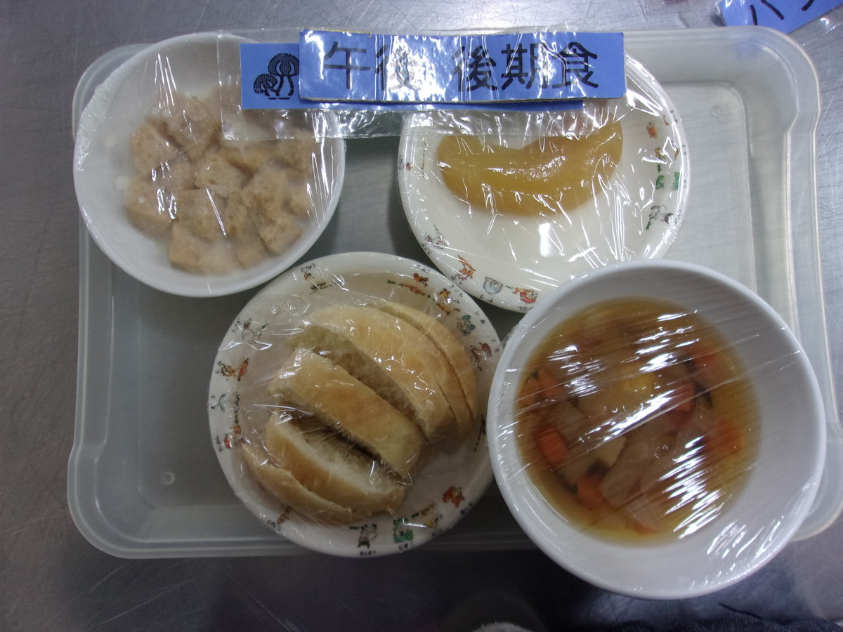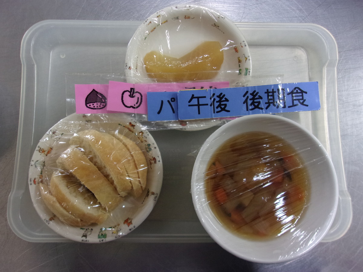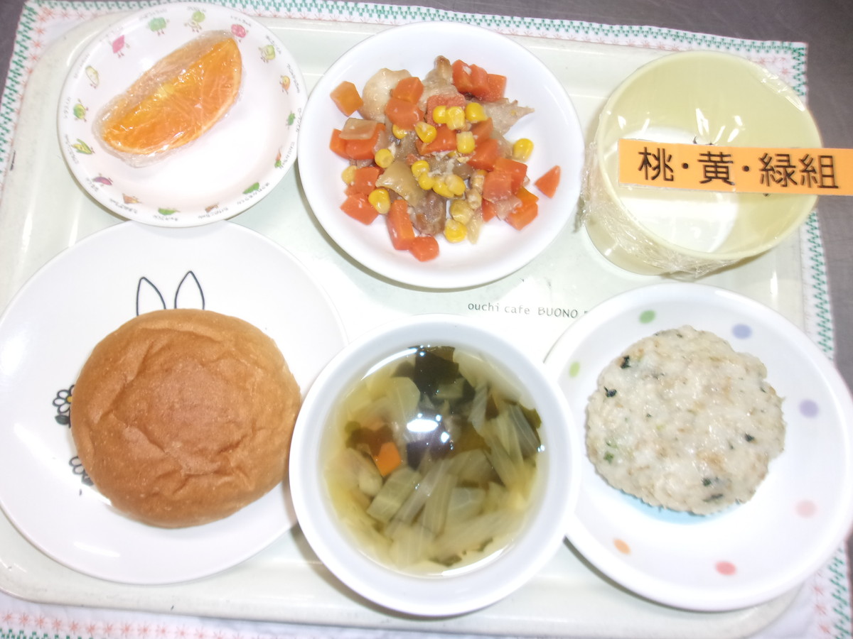 ロールパン 鶏肉オーブン焼き 野菜スープ みかん