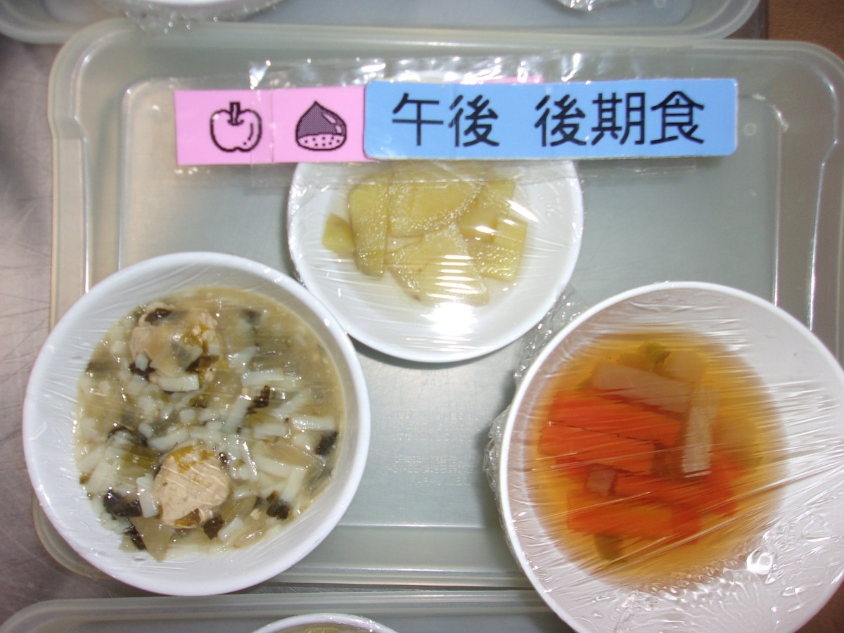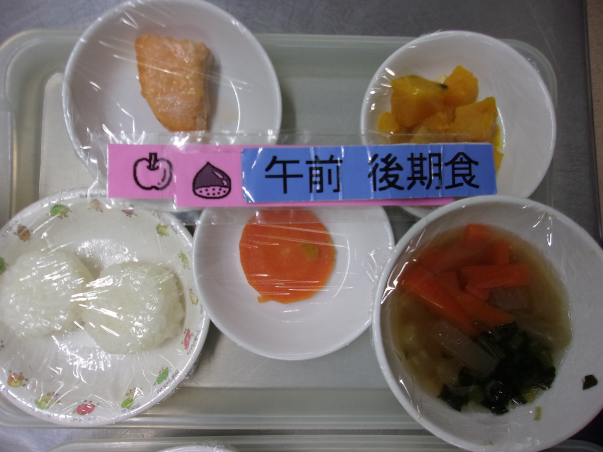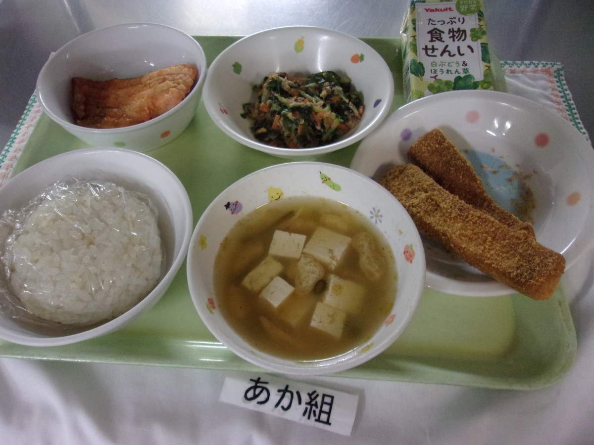 3時のおやつは 白ブドウほうれん草 きな粉っ糖です