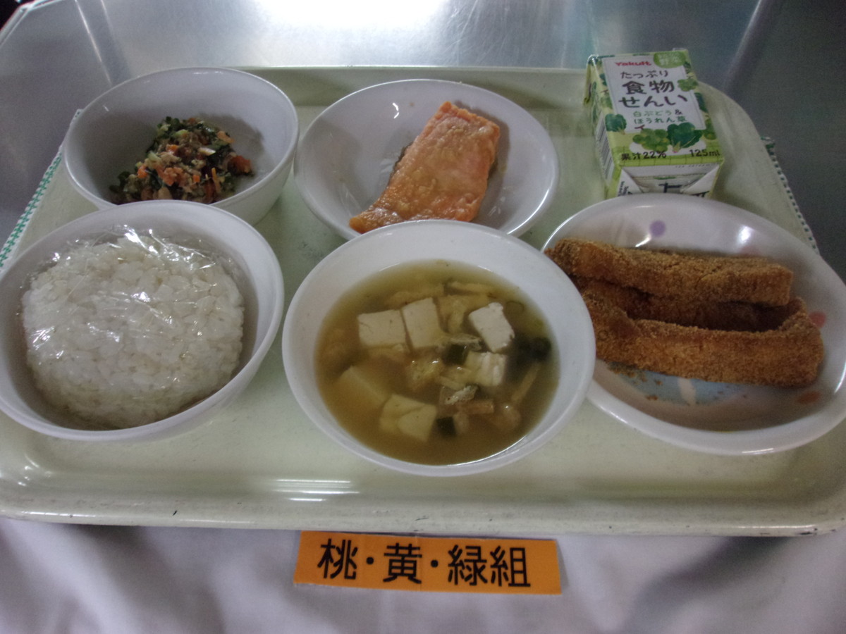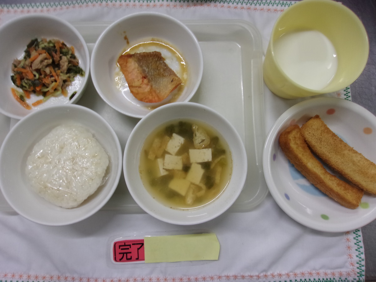 ごはん 鮭バター醤油 ツナとわかめのサラダ 油揚げと豆腐の味噌汁