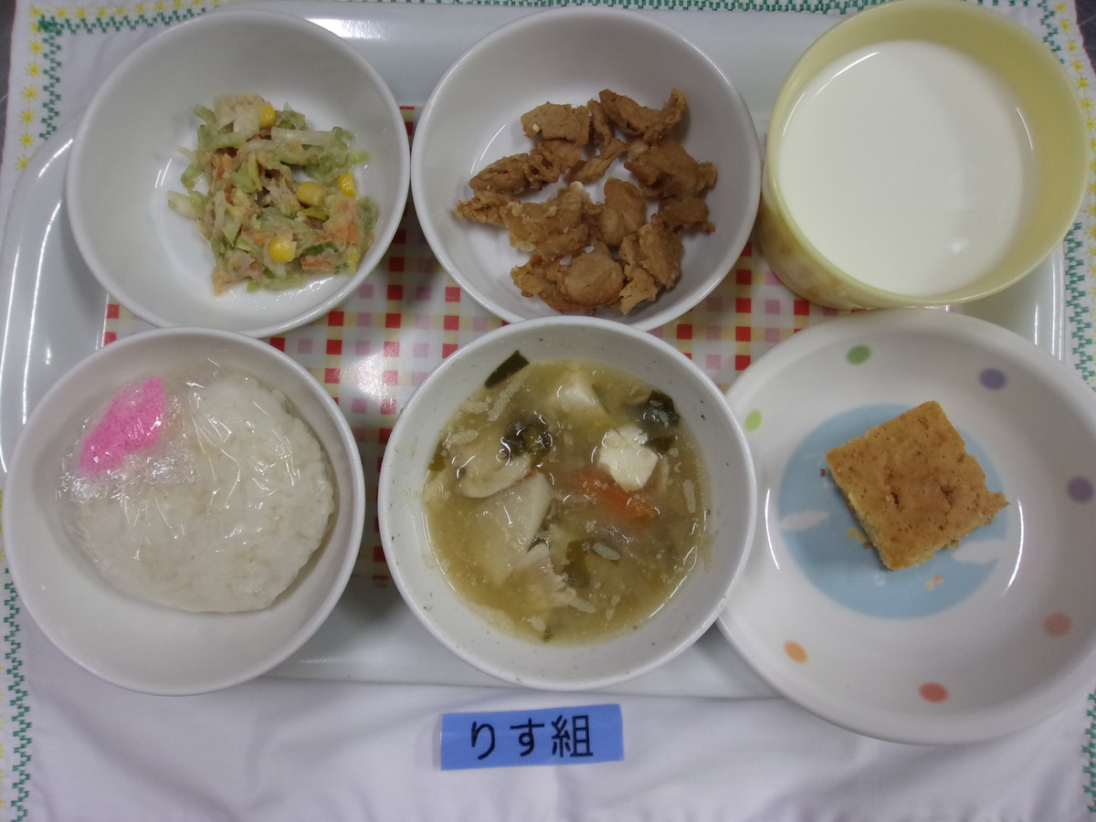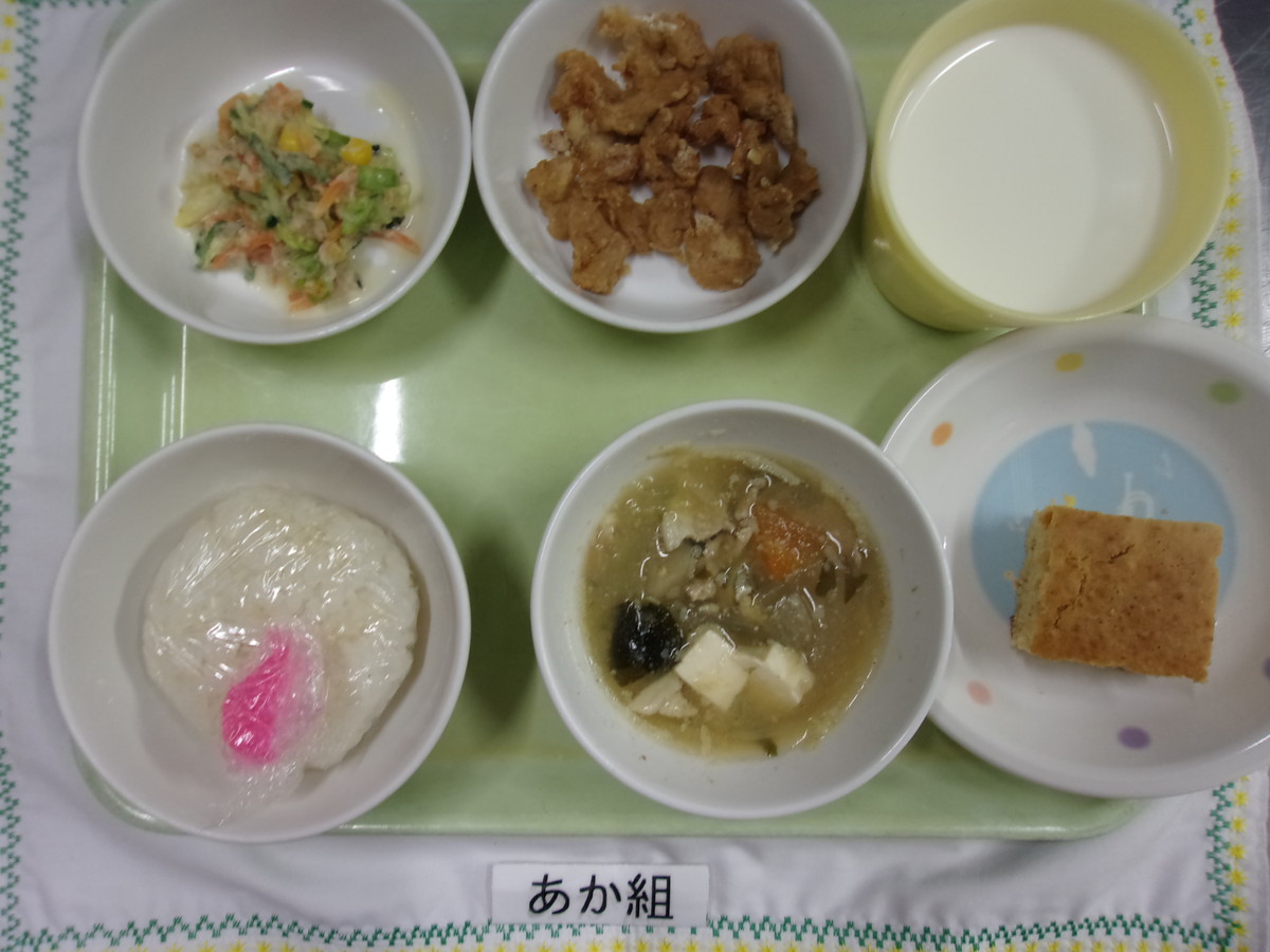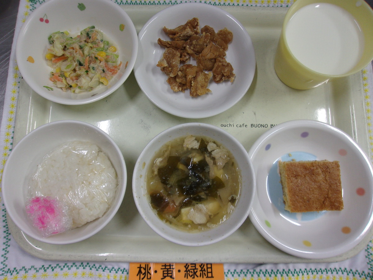 さくらごはん 秘密のから揚げ 和風サラダ わかめと豚汁