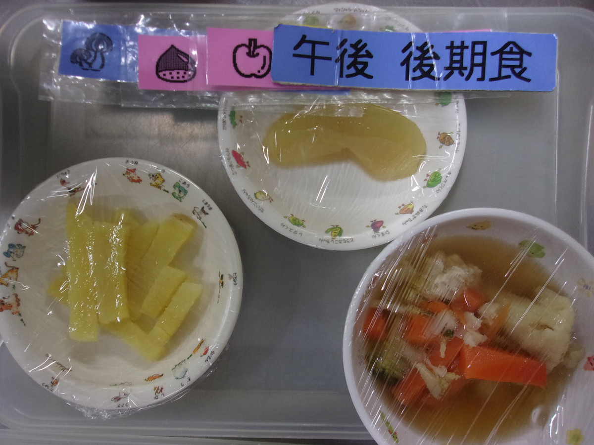 3時のおやつは 牛乳 ゴマパンケーキでした。