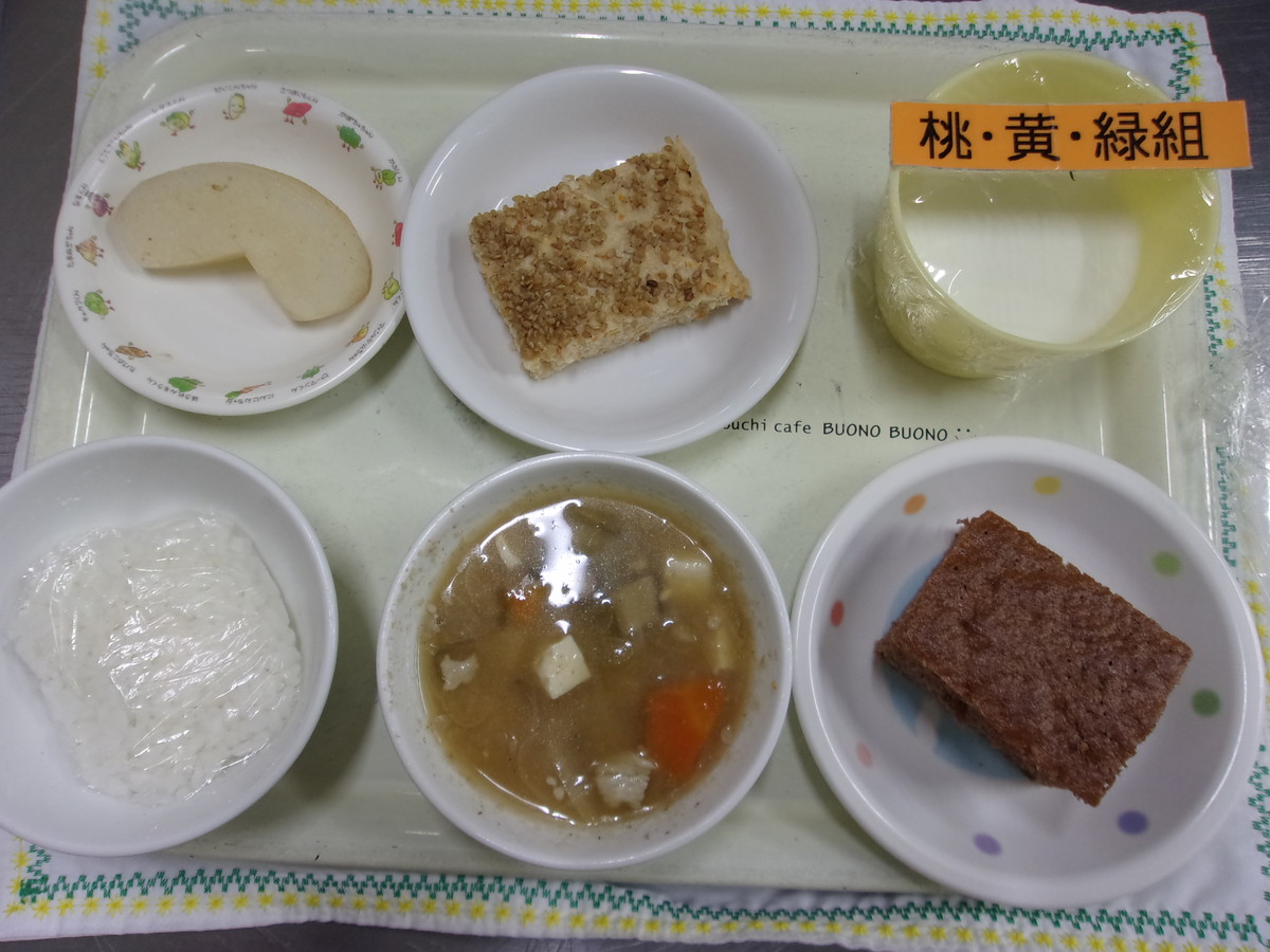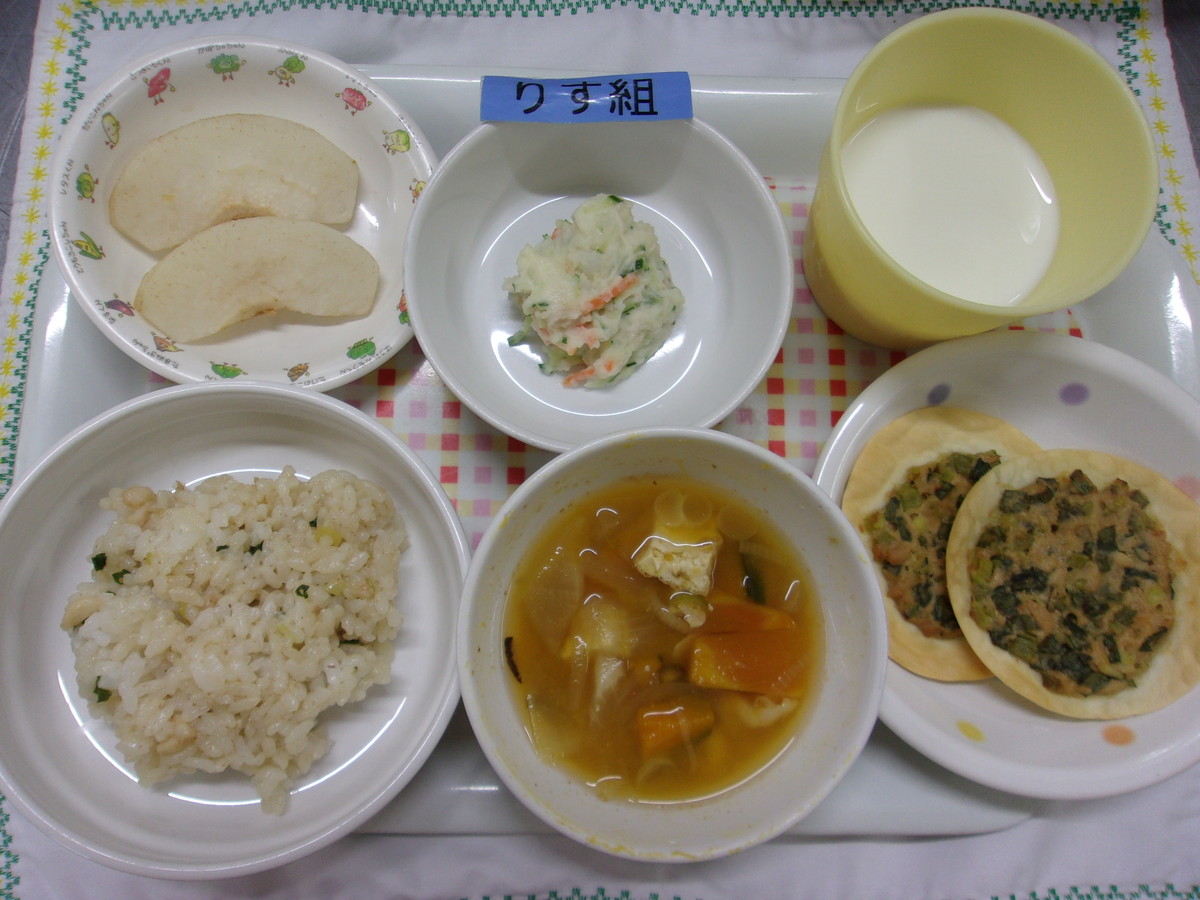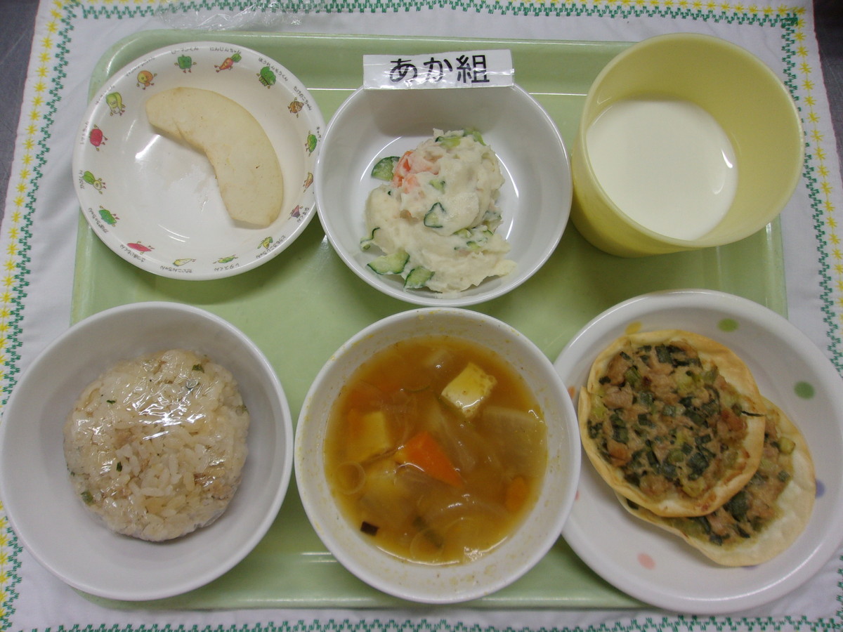 3時のおやつは 牛乳 ねぎツナせんべいです。