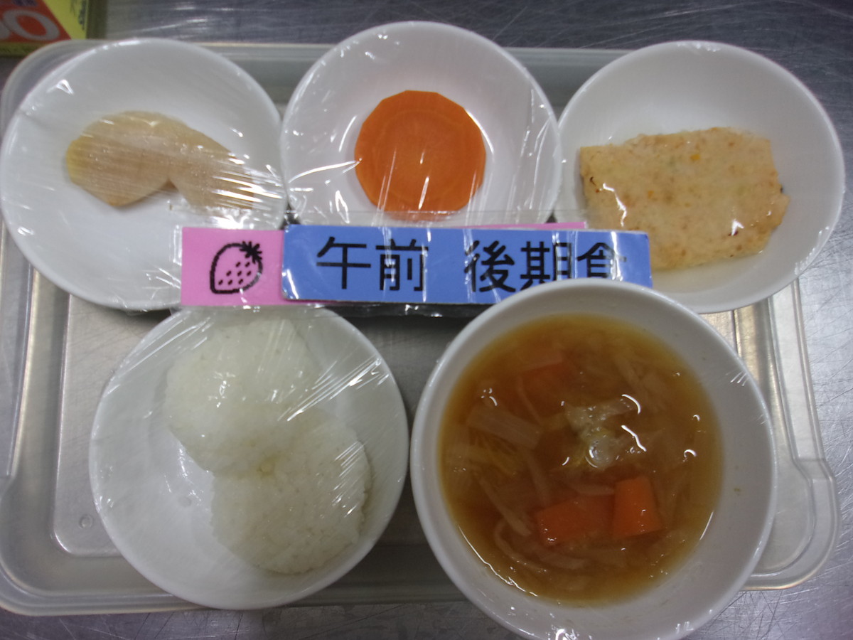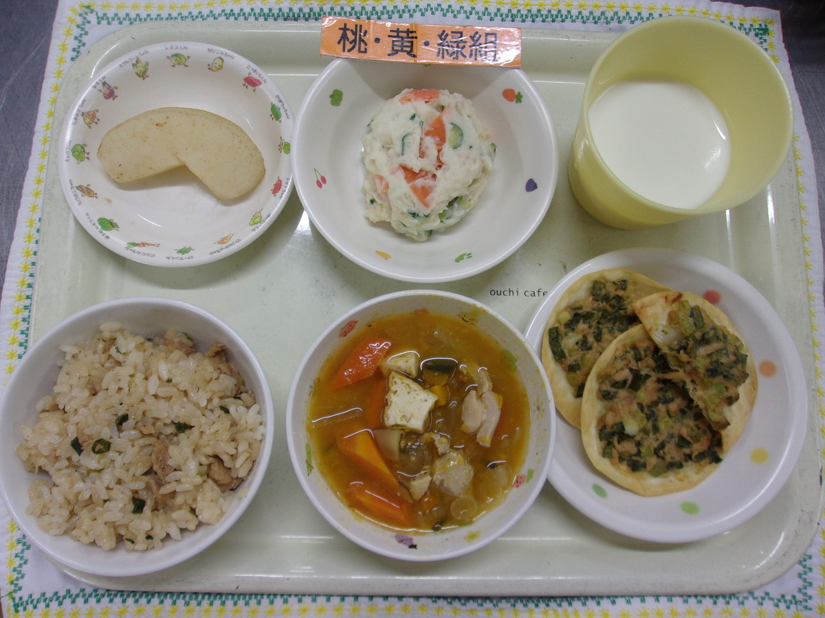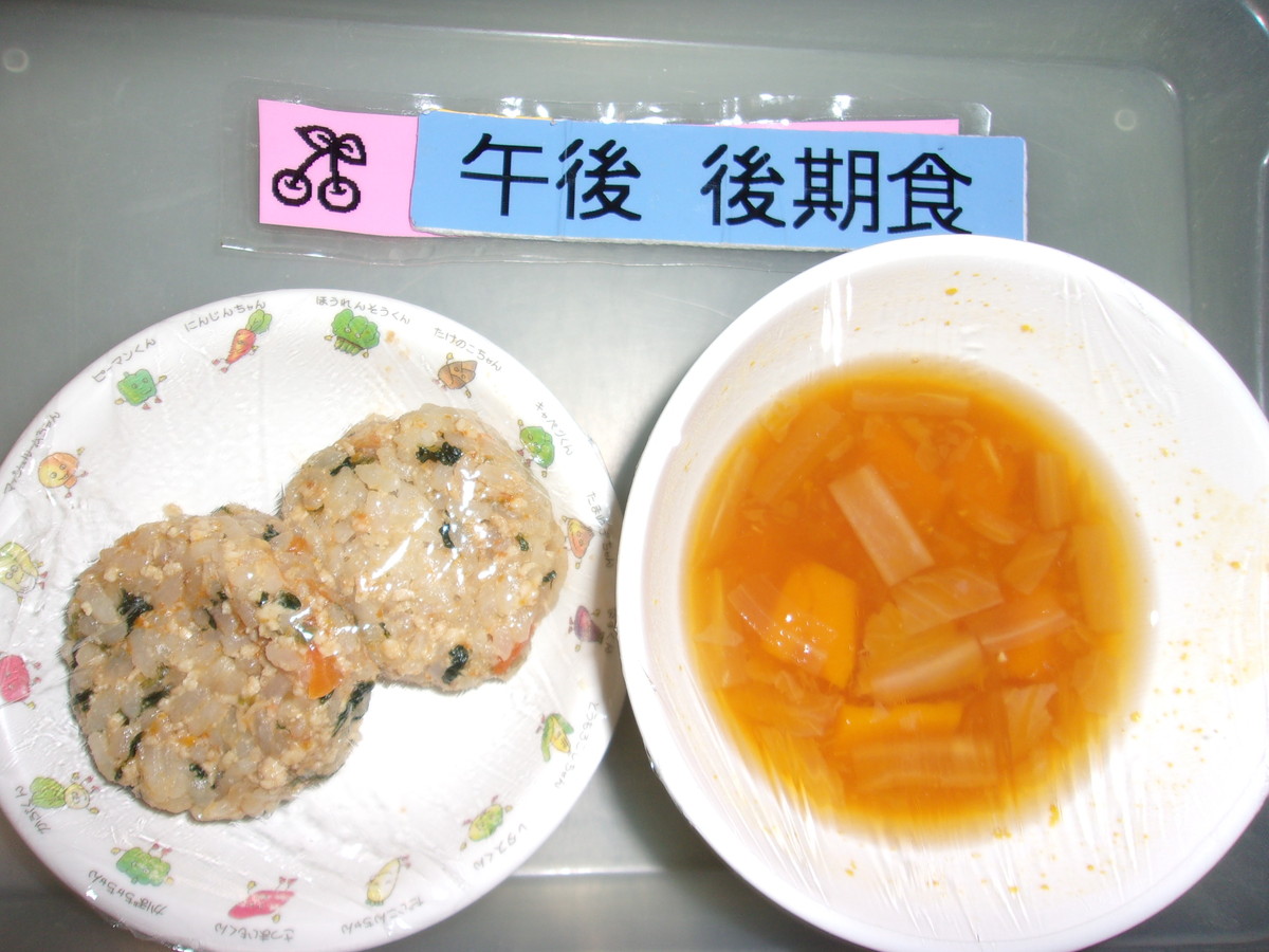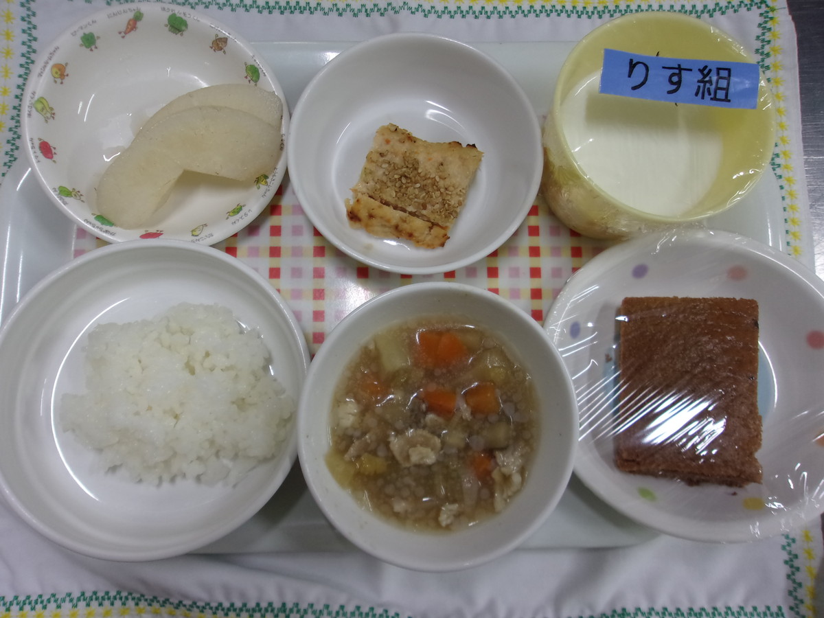 3時のおやつは 牛乳 ねぎツナせんべいです。