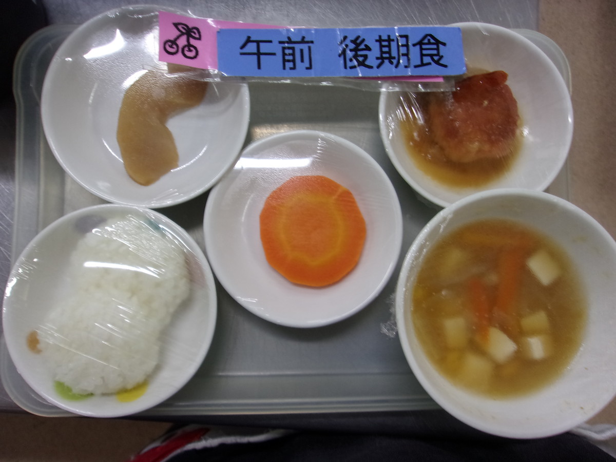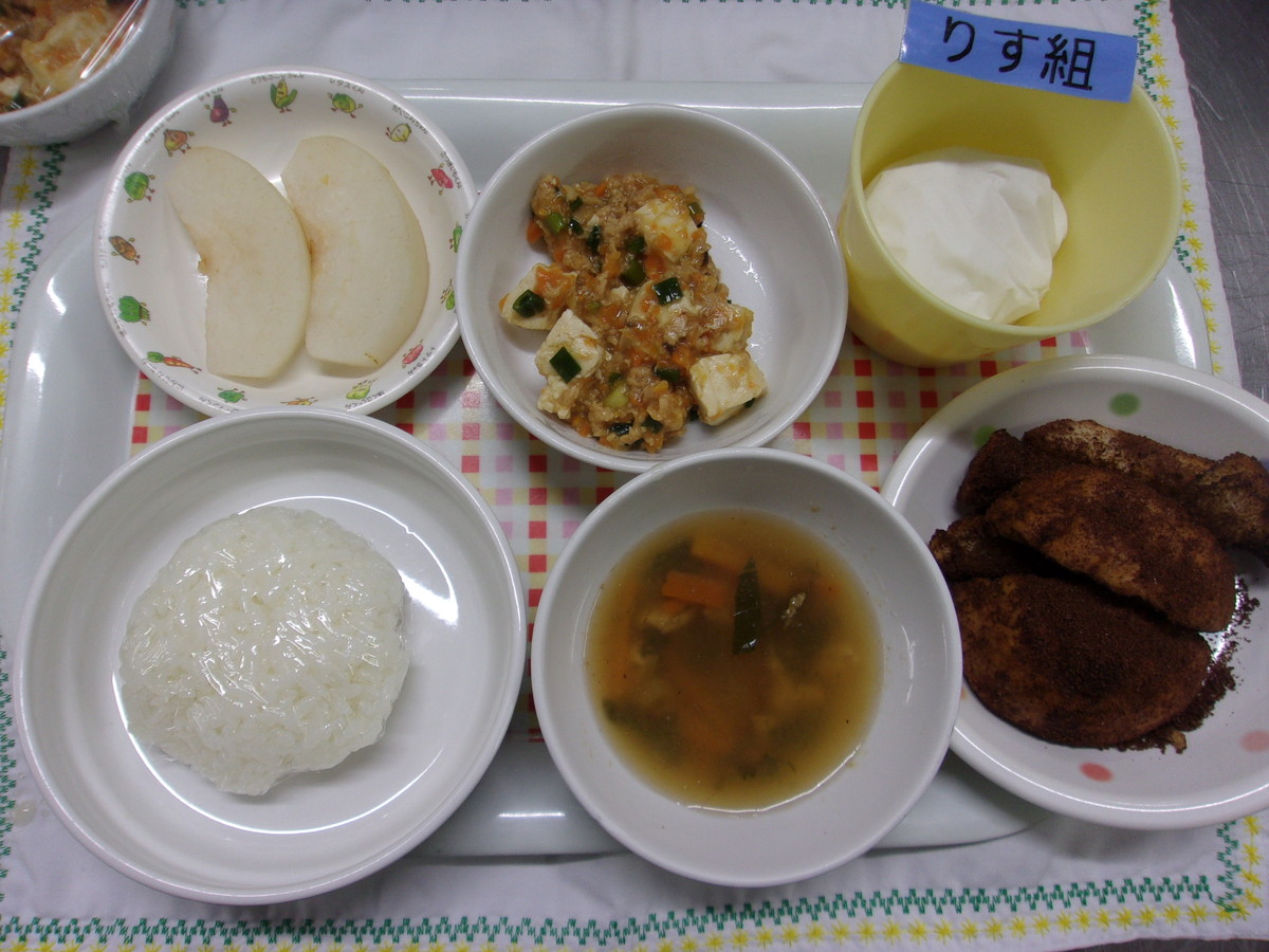 豚肉生姜ご飯 ポテトサラダ ほうとう汁 梨