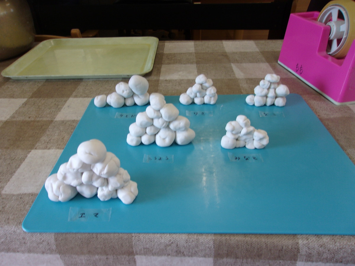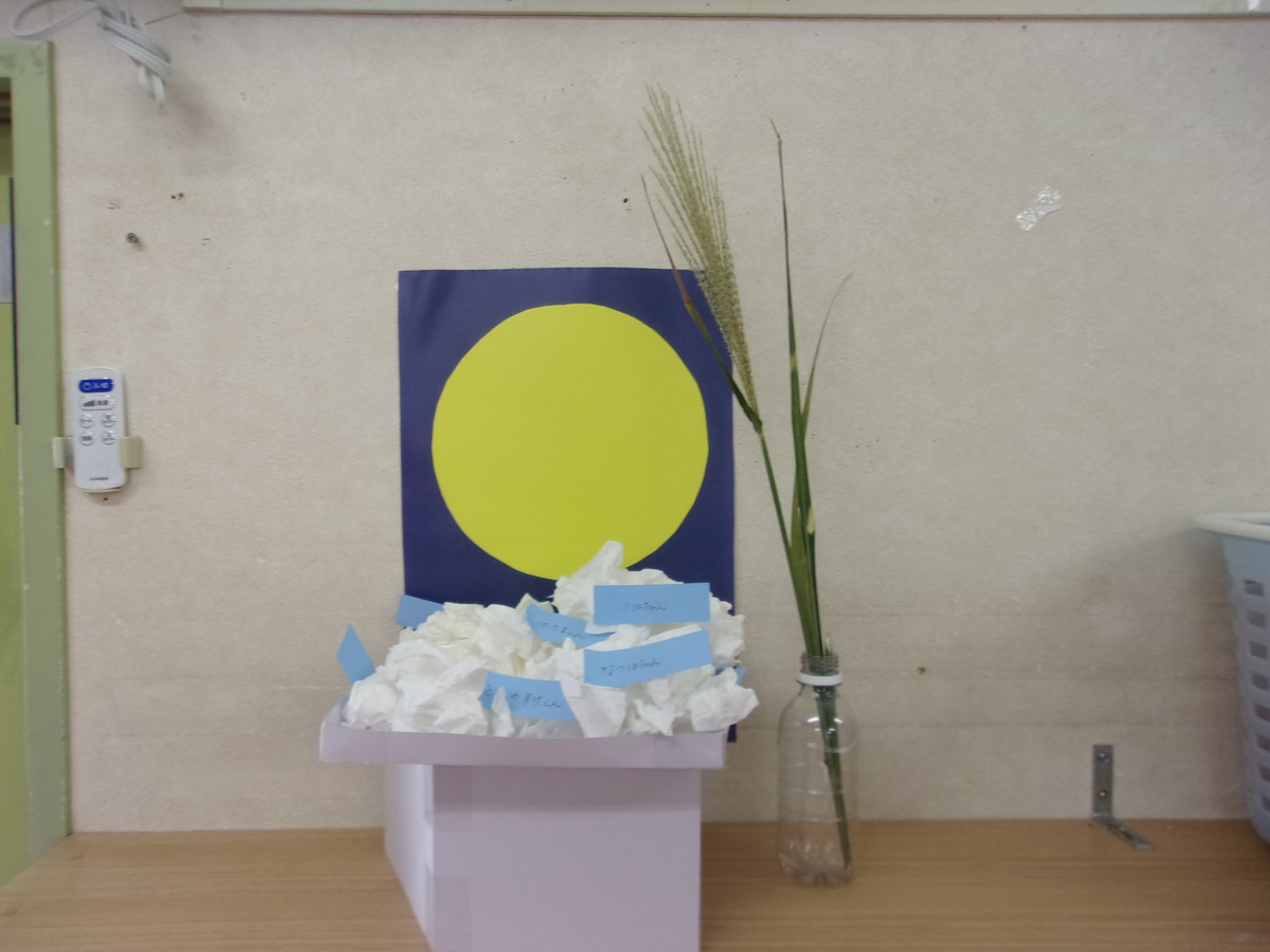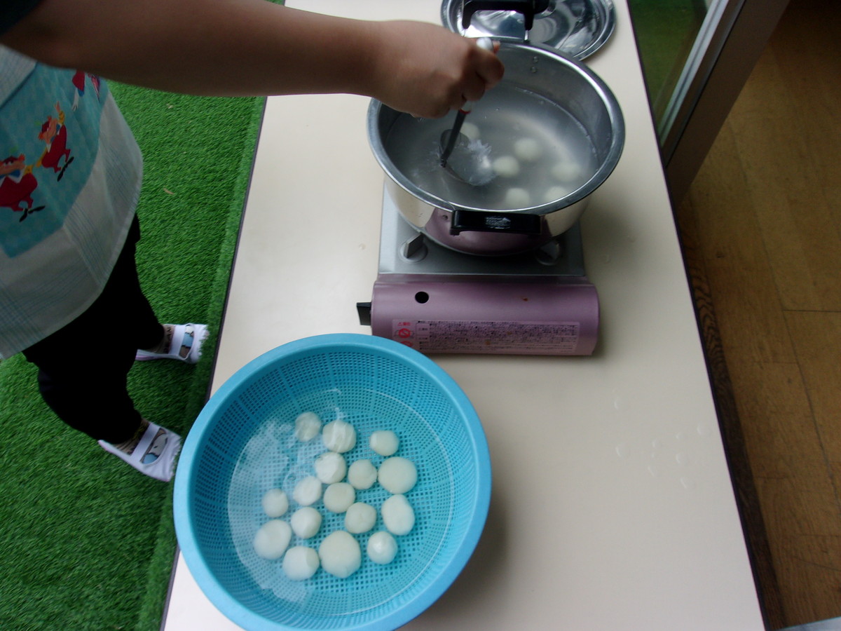 緑組はだんご粉を使い丸めて、茹でてお月見だんごを作りました。