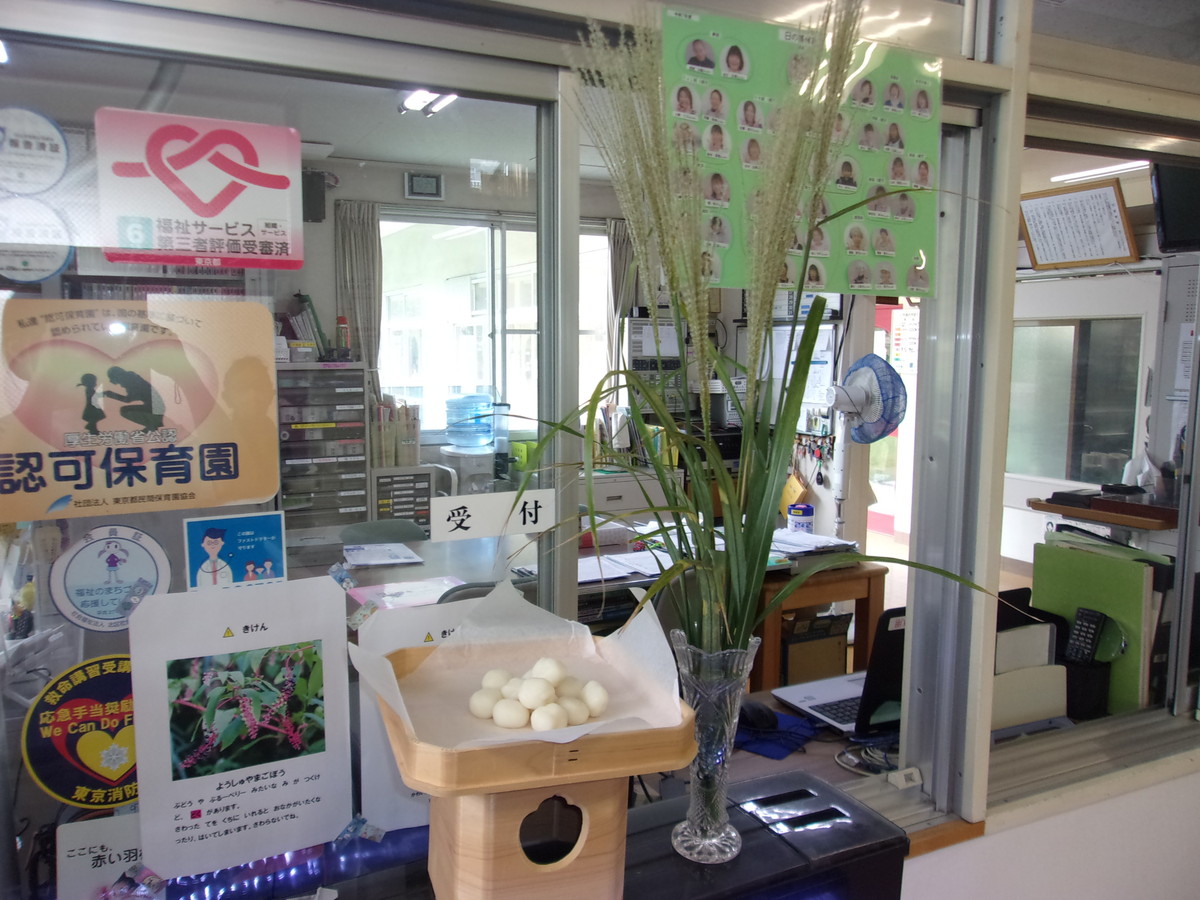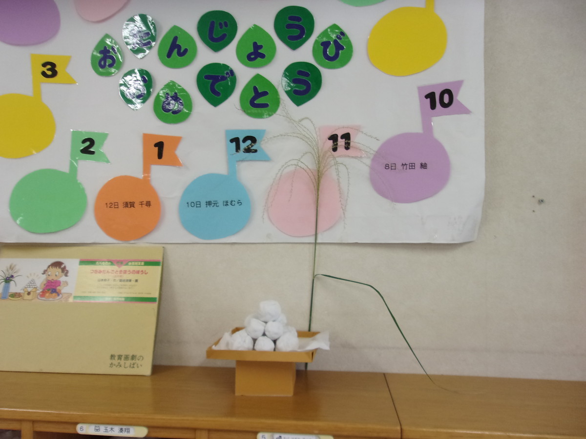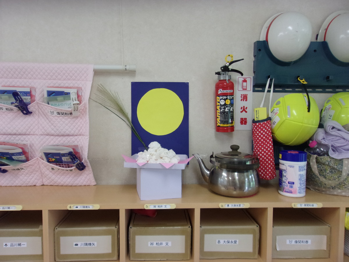 緑組はだんご粉を使い丸めて、茹でてお月見だんごを作りました。