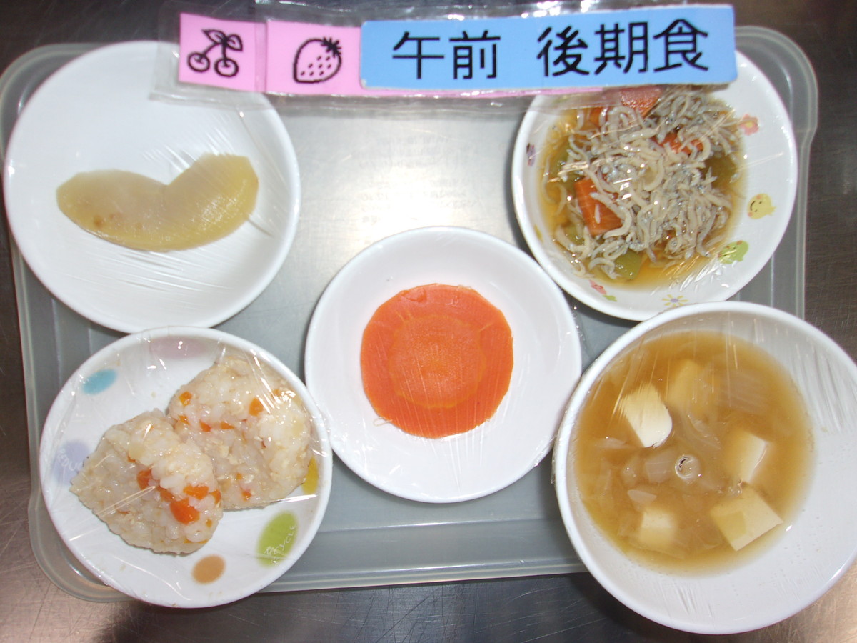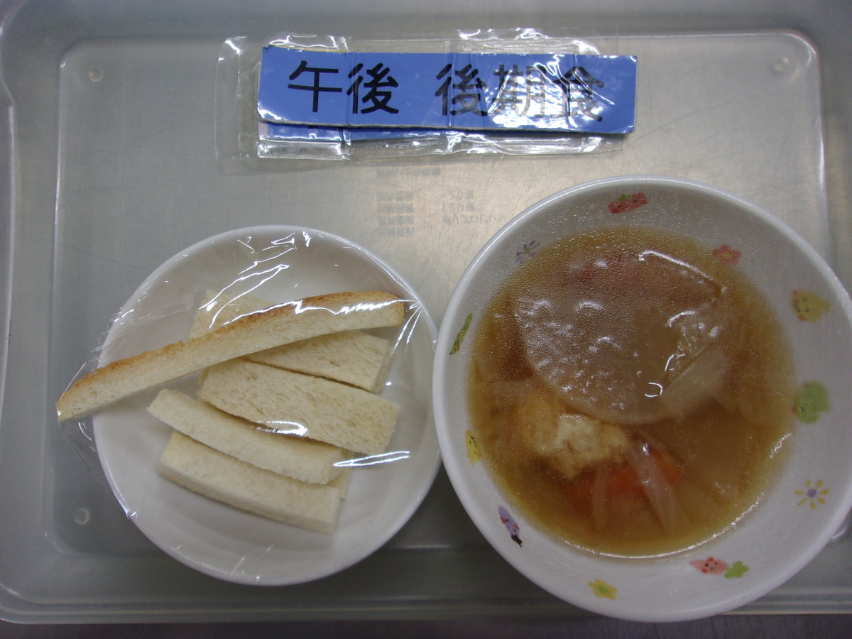 3時のおやつは 牛乳 カツオおにぎりでした。