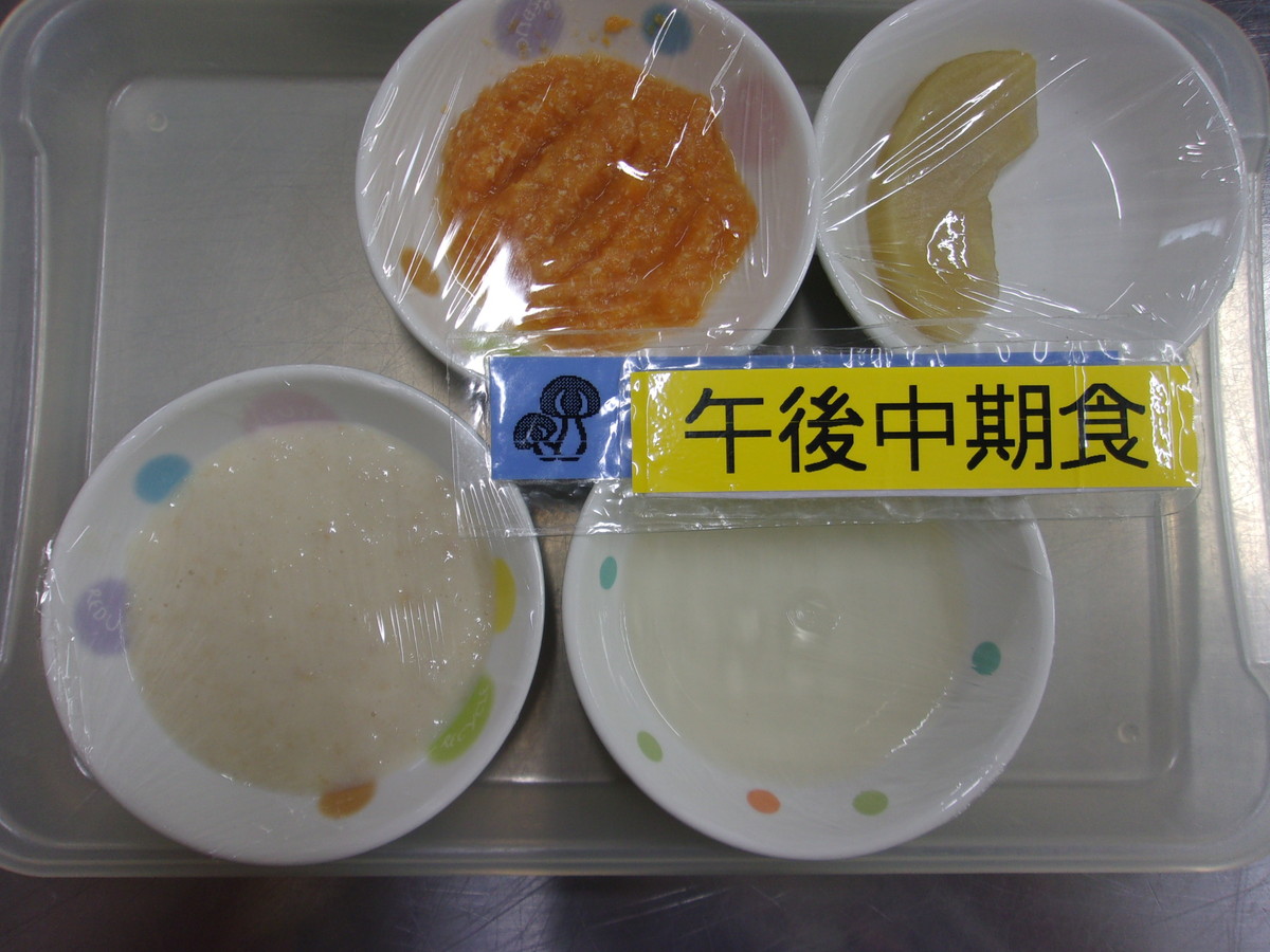 今日は手で食べられる給食メニューです。リス組はバーガーにすると食べづらいのでパンと