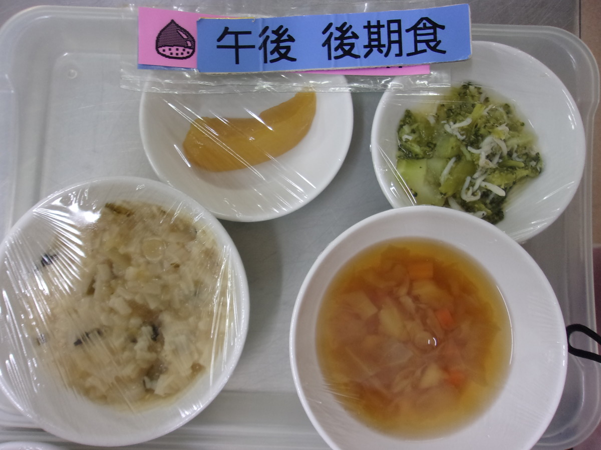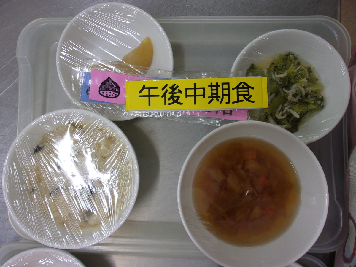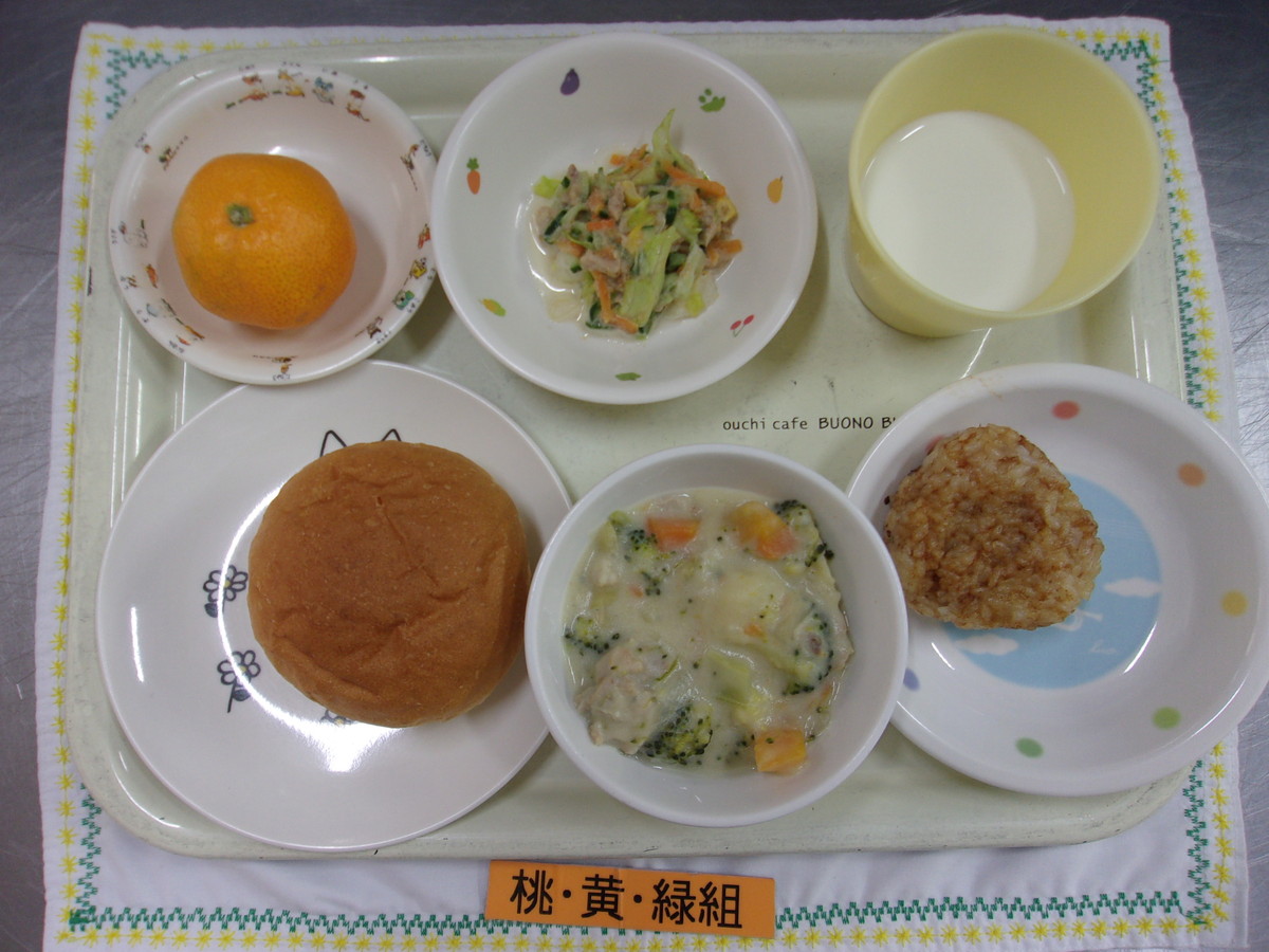 ロールパン ブロッコリーシチュー 和風サラダ みかん