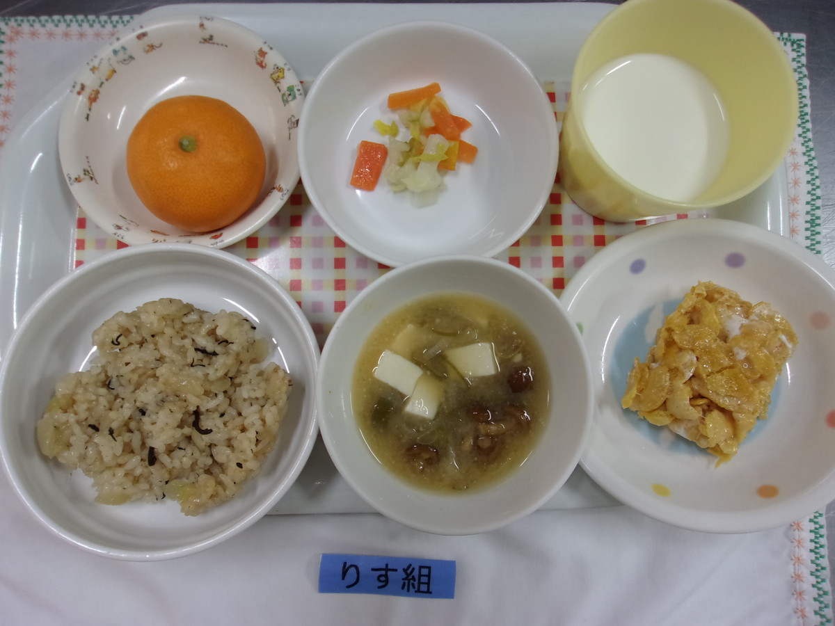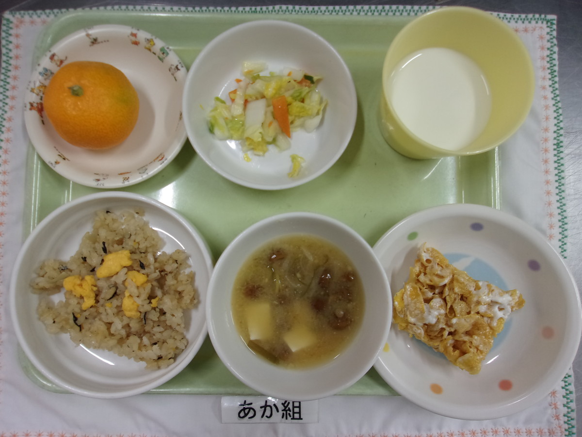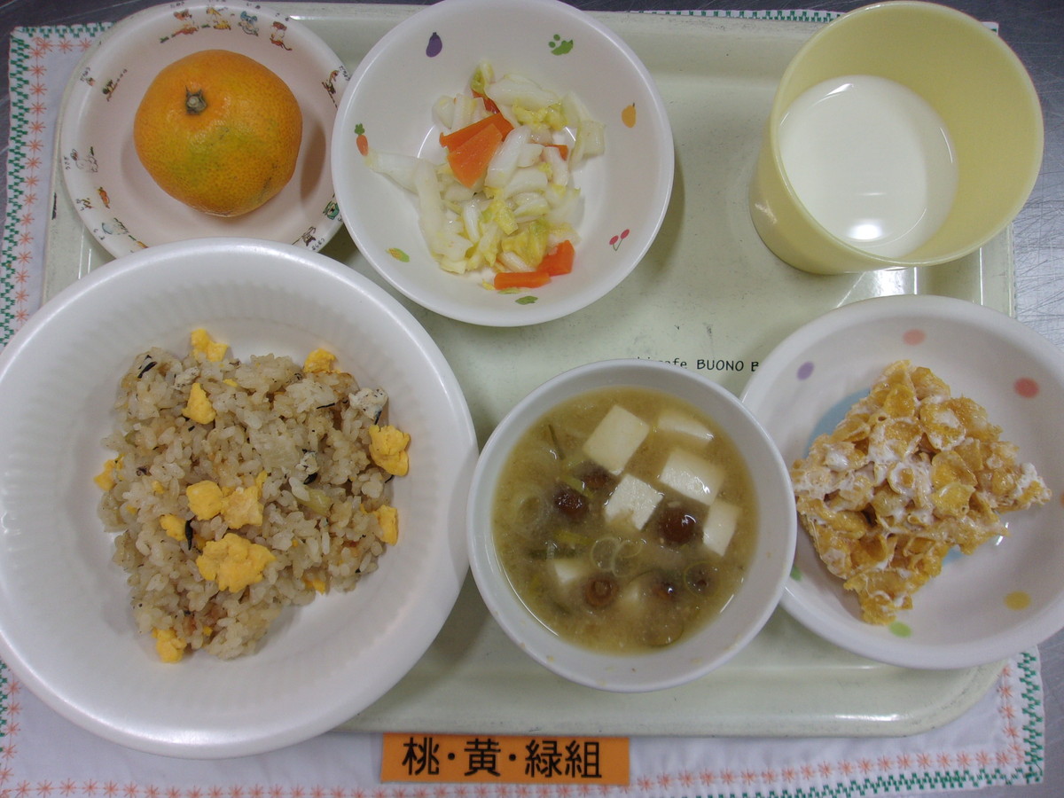 ひじき炒飯 白菜サラダ なめこ味噌汁 みかん