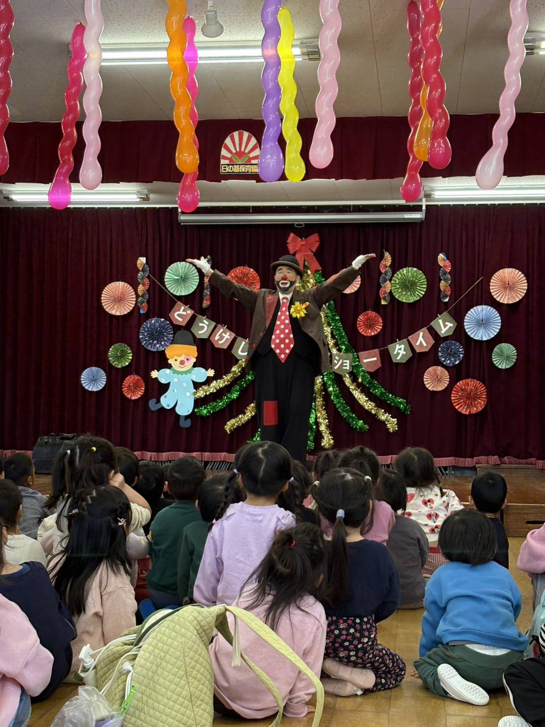 月曜日はクリスマス会です。保育園にピエロが来るよ~見に来てくださいね。 参加したい方はお電話ください。