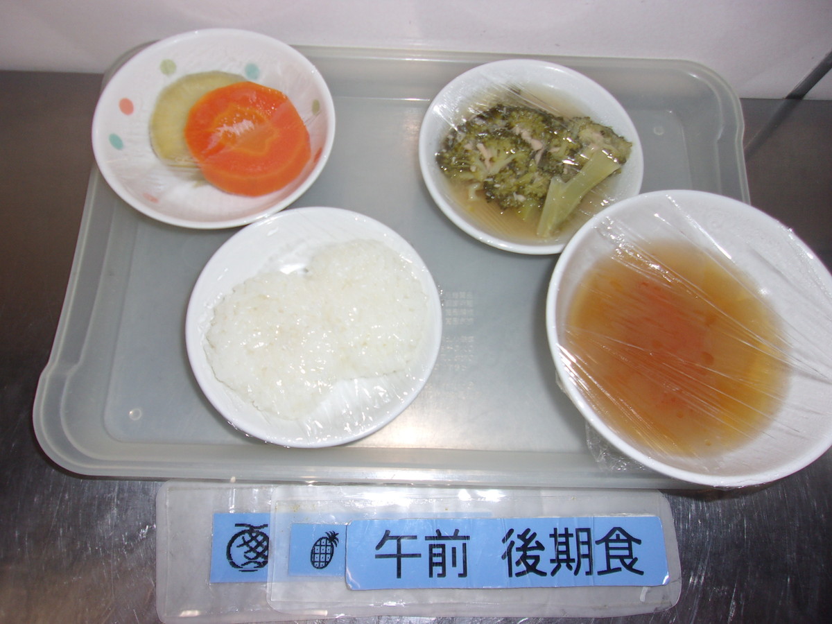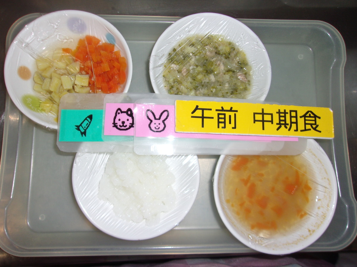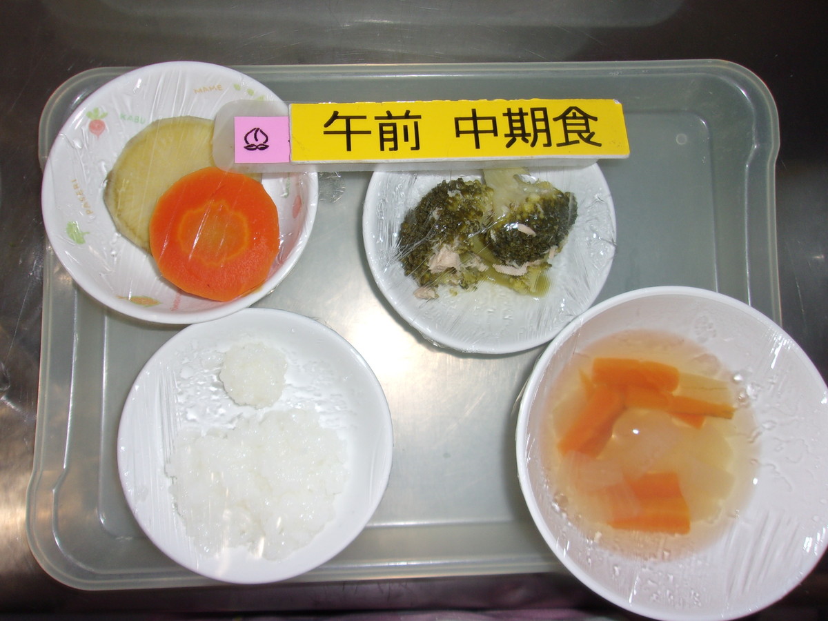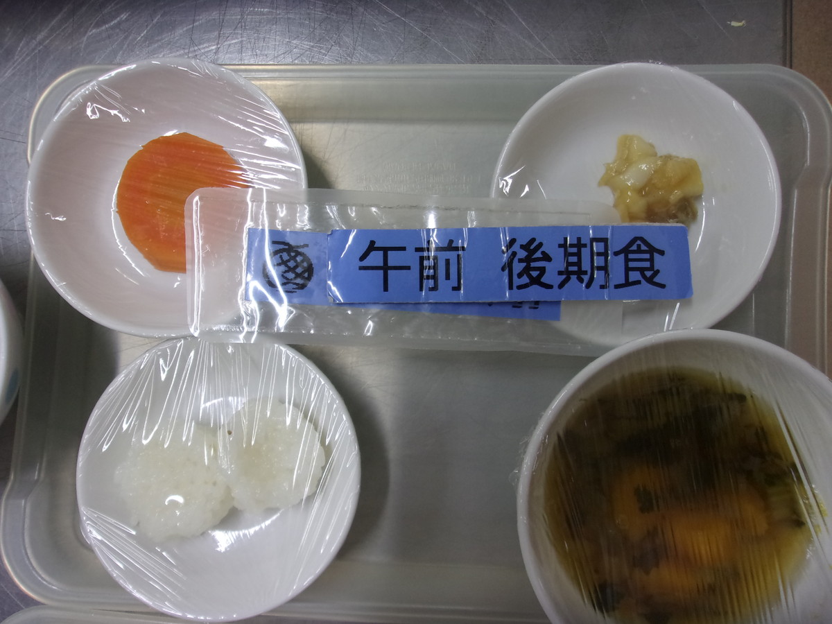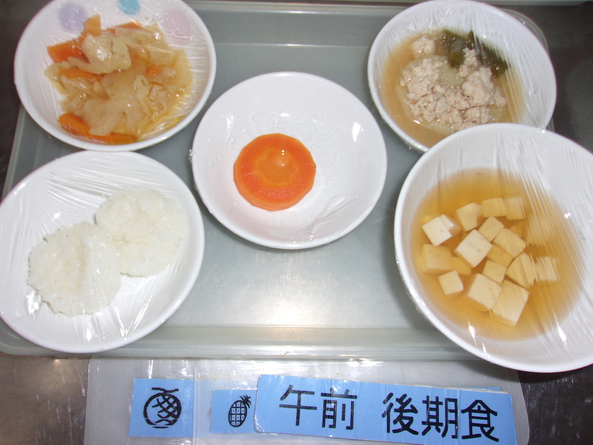 今日の給食は チキンカレーライス 人参サラダ すまし汁