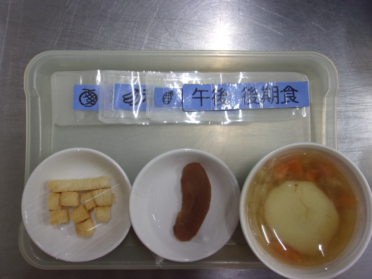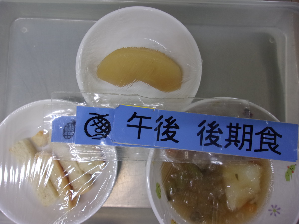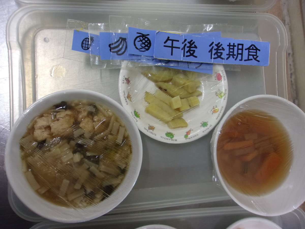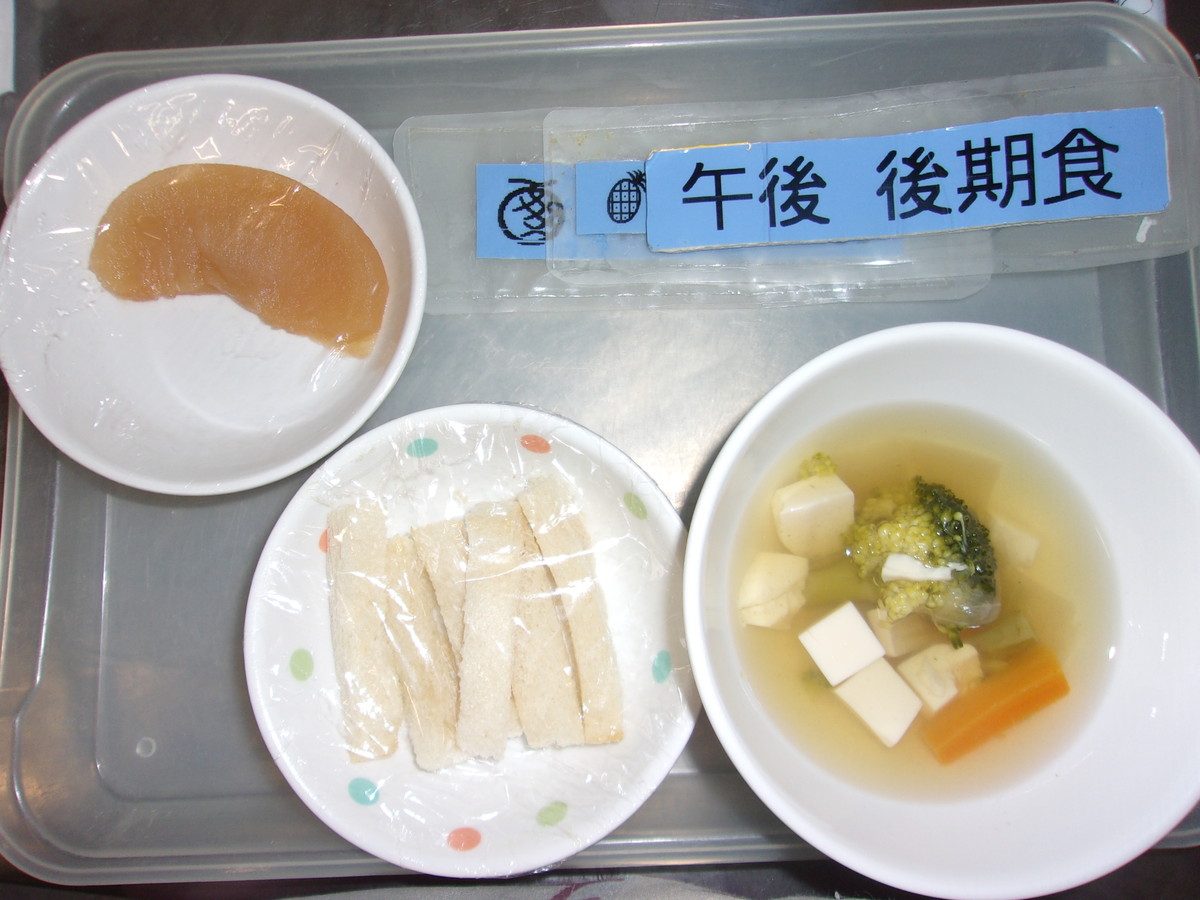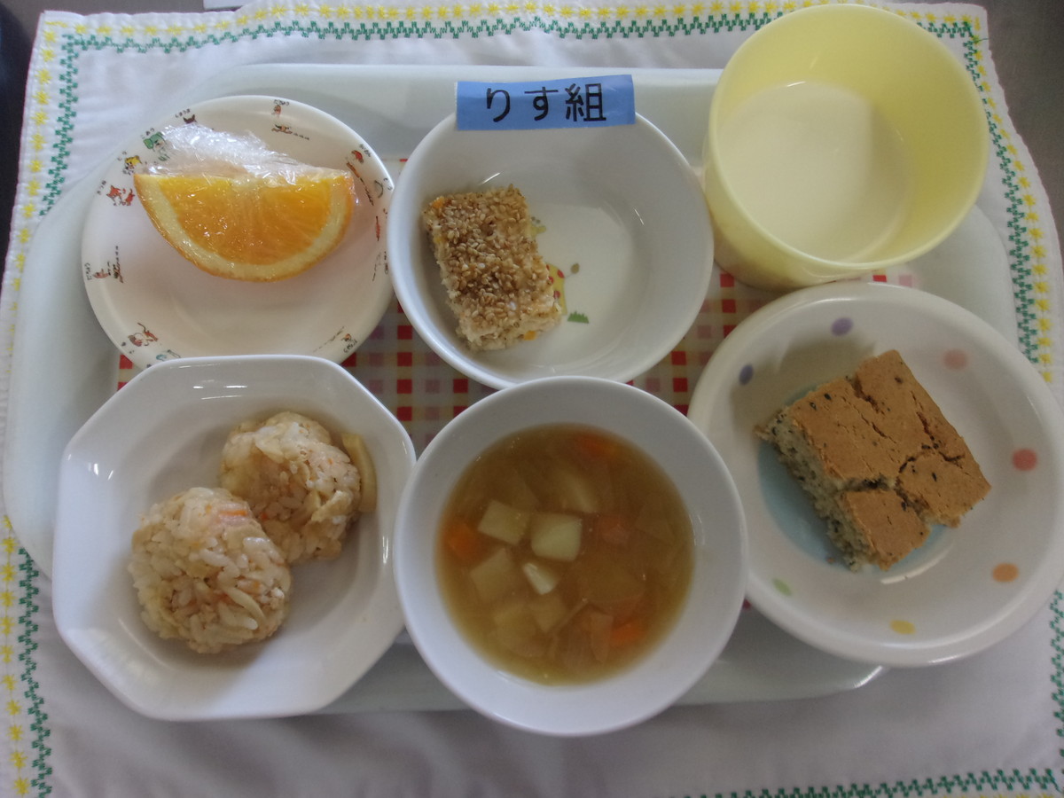 3時のおやつは 白ブドウほうれん草 揚げパンココアです。