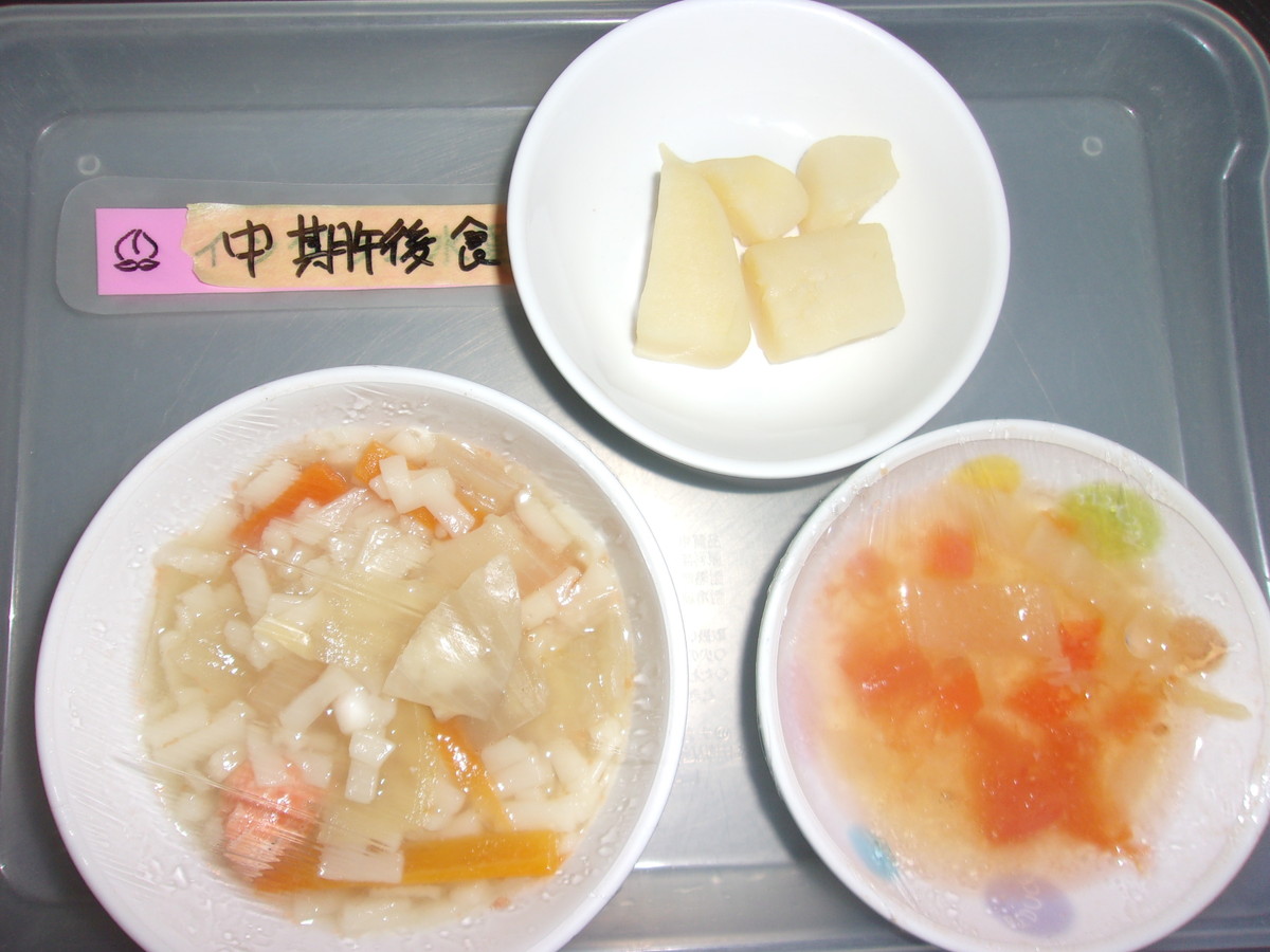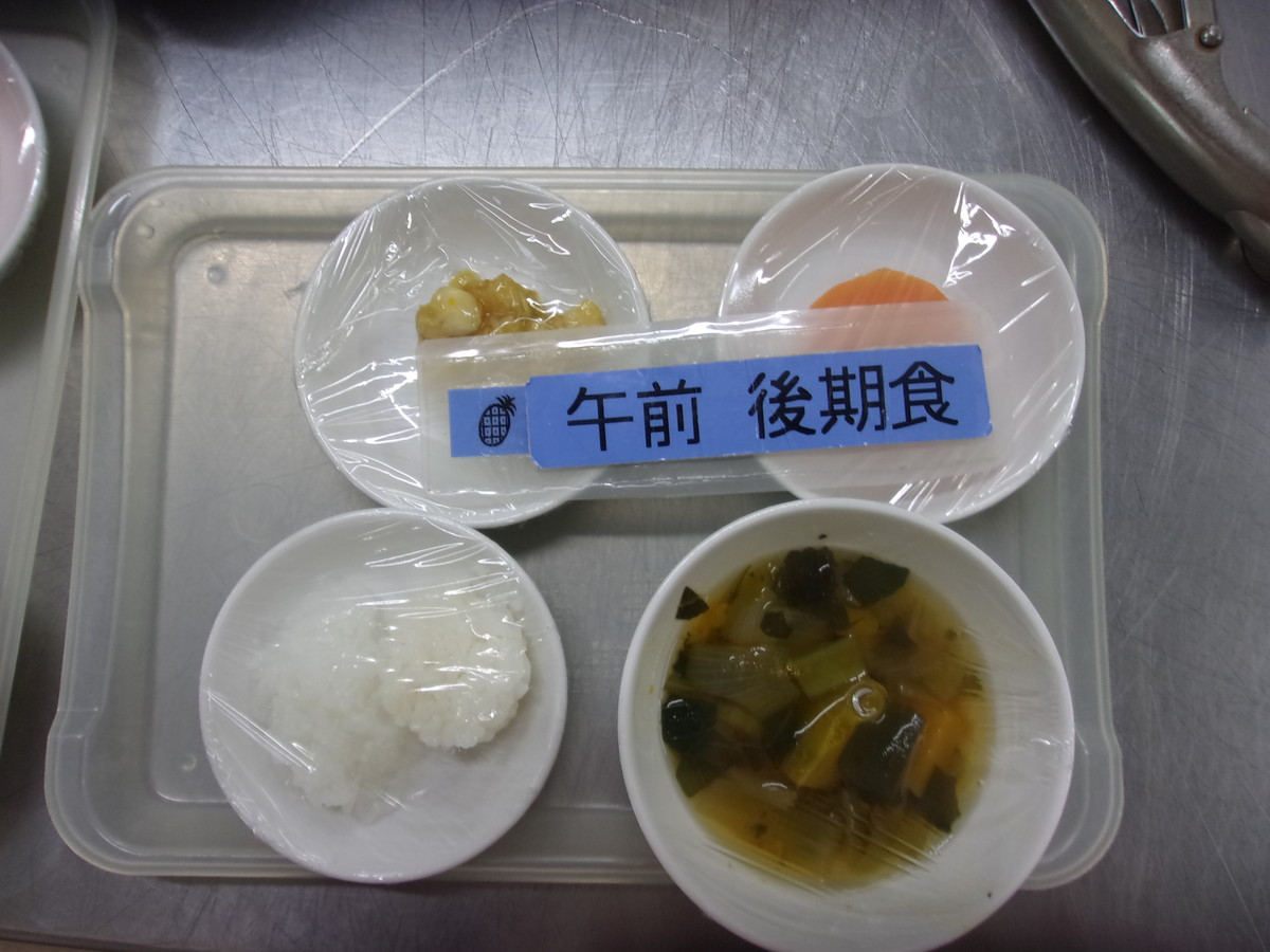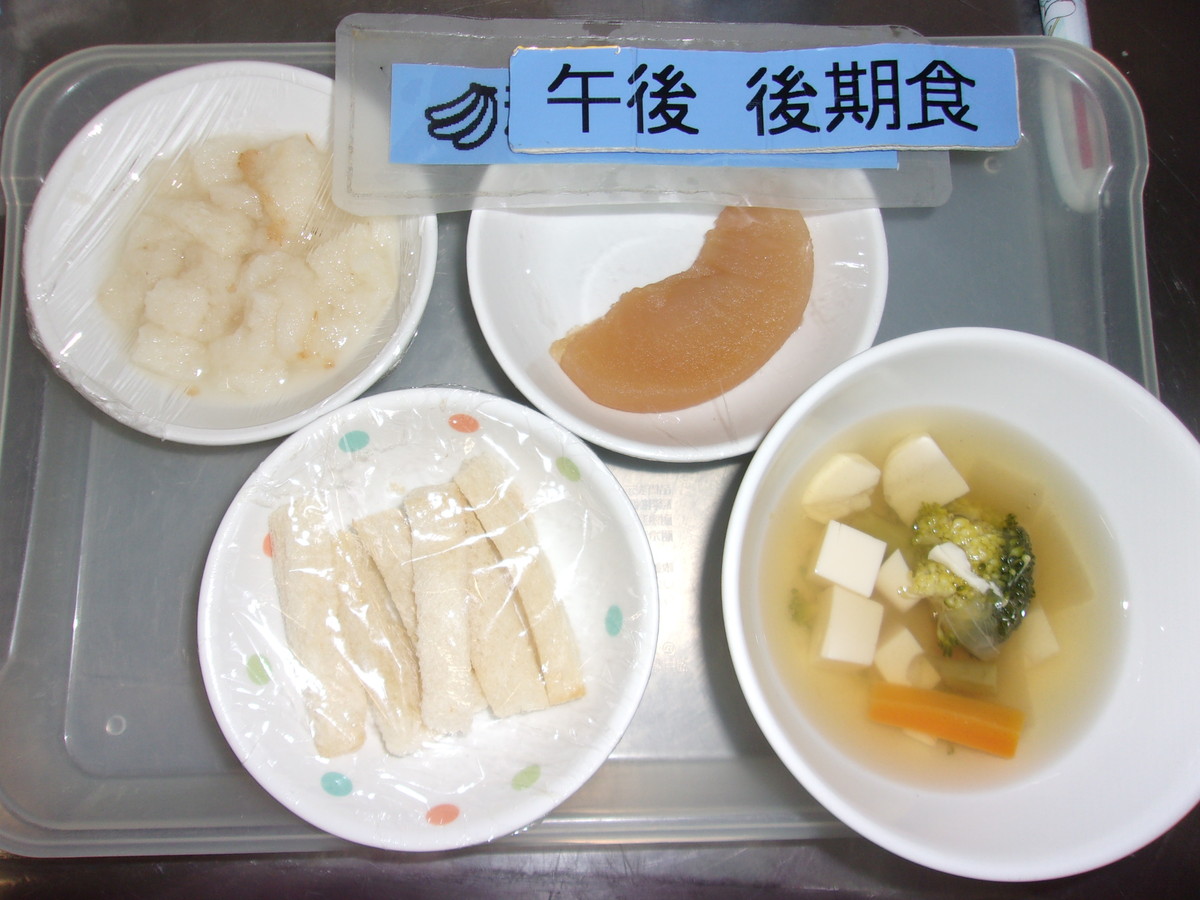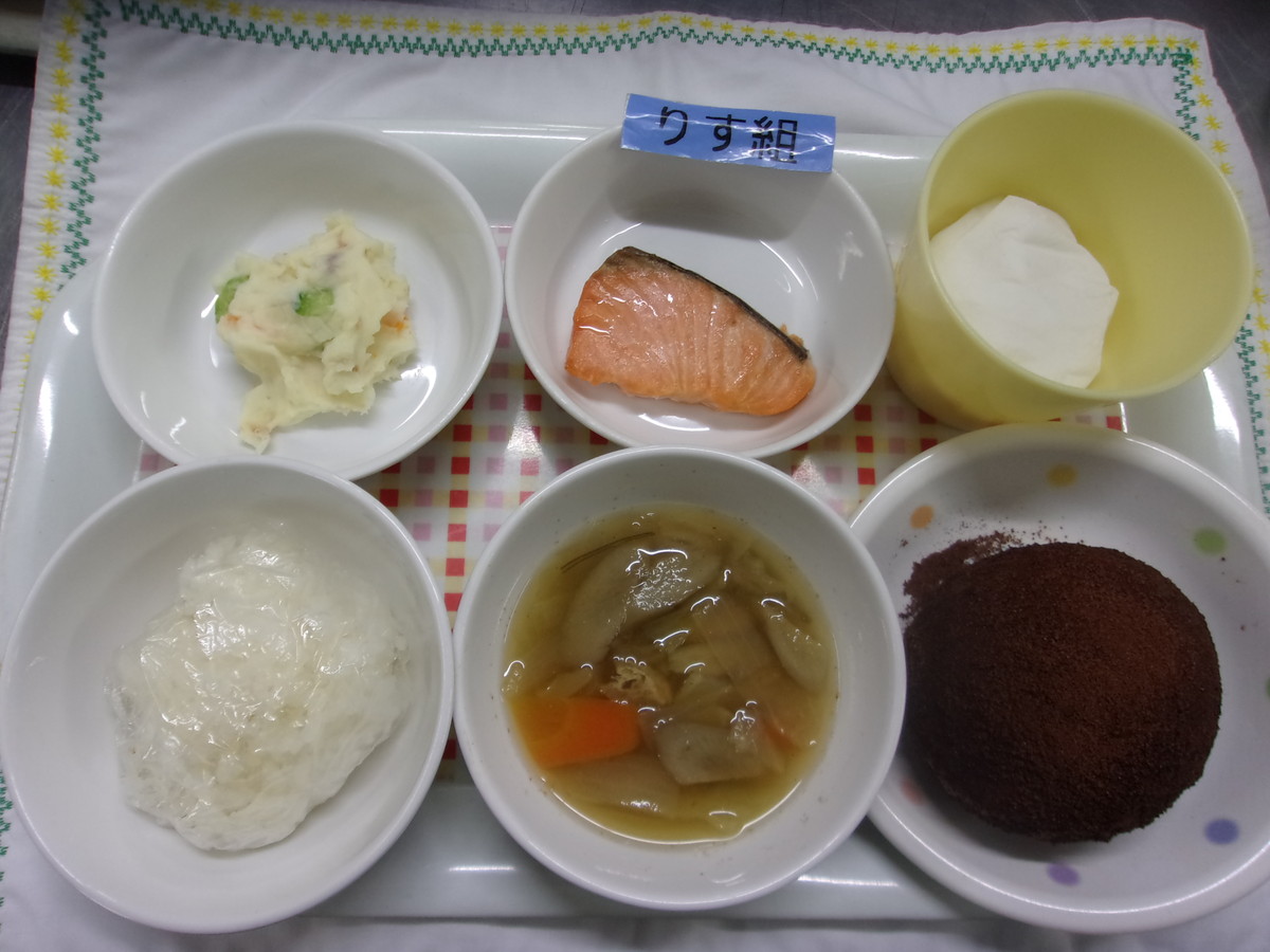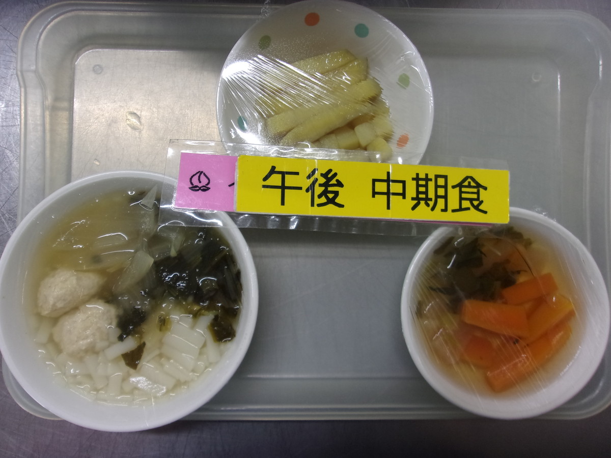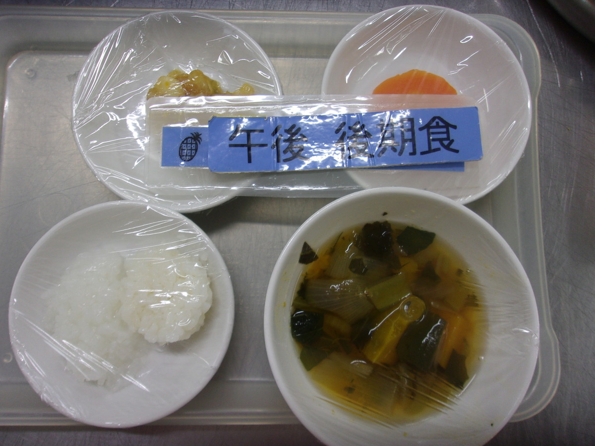 3時のおやつは 白ブドウほうれん草 揚げパンココアです。