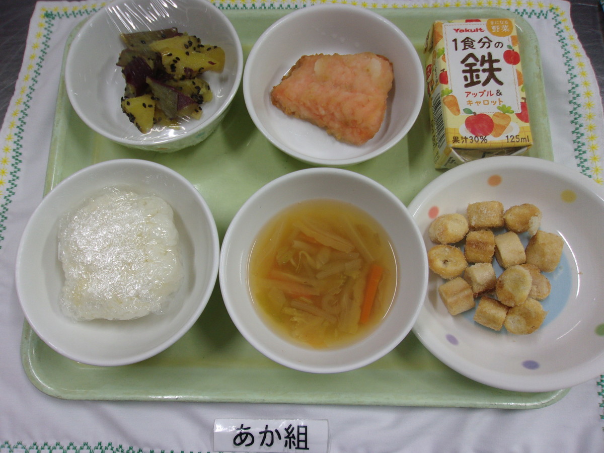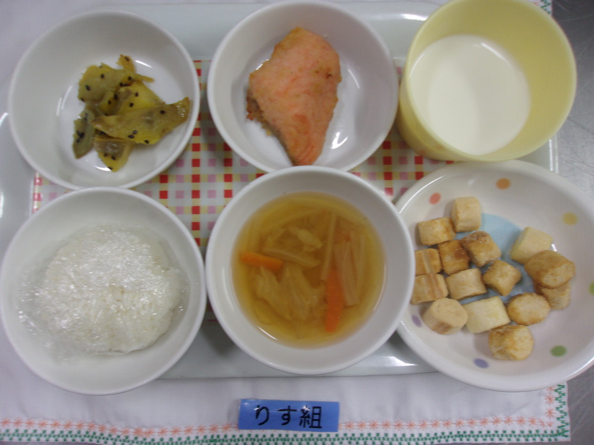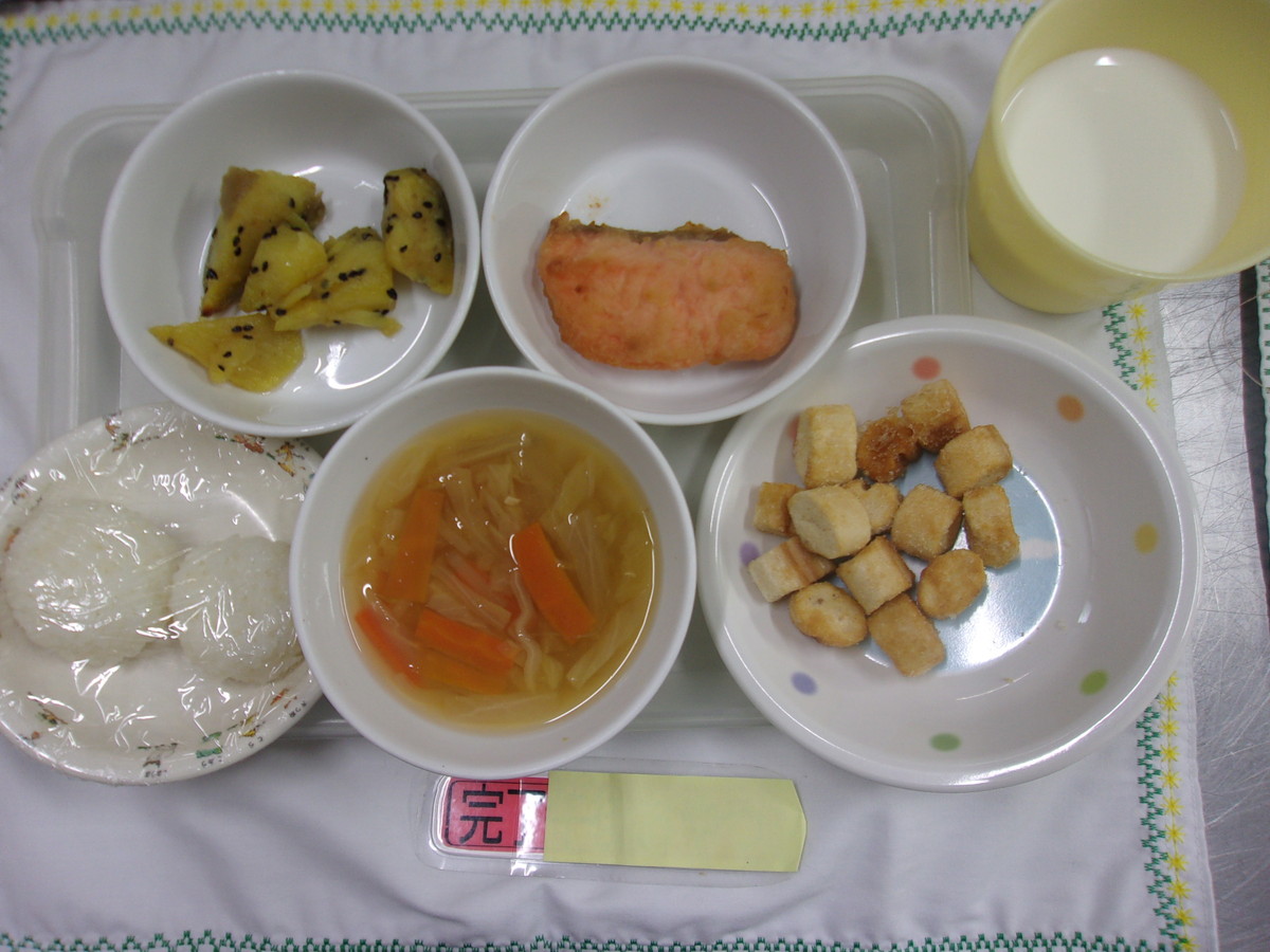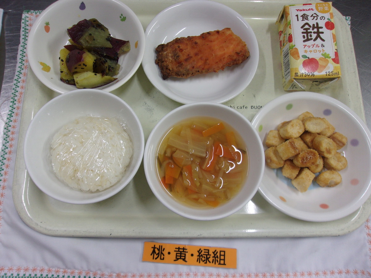 ごはん 鮭の味噌揚げ 大学芋 味噌汁