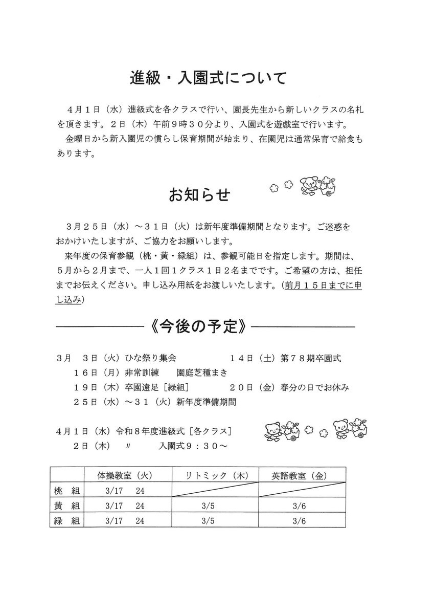 園からのお知らせ