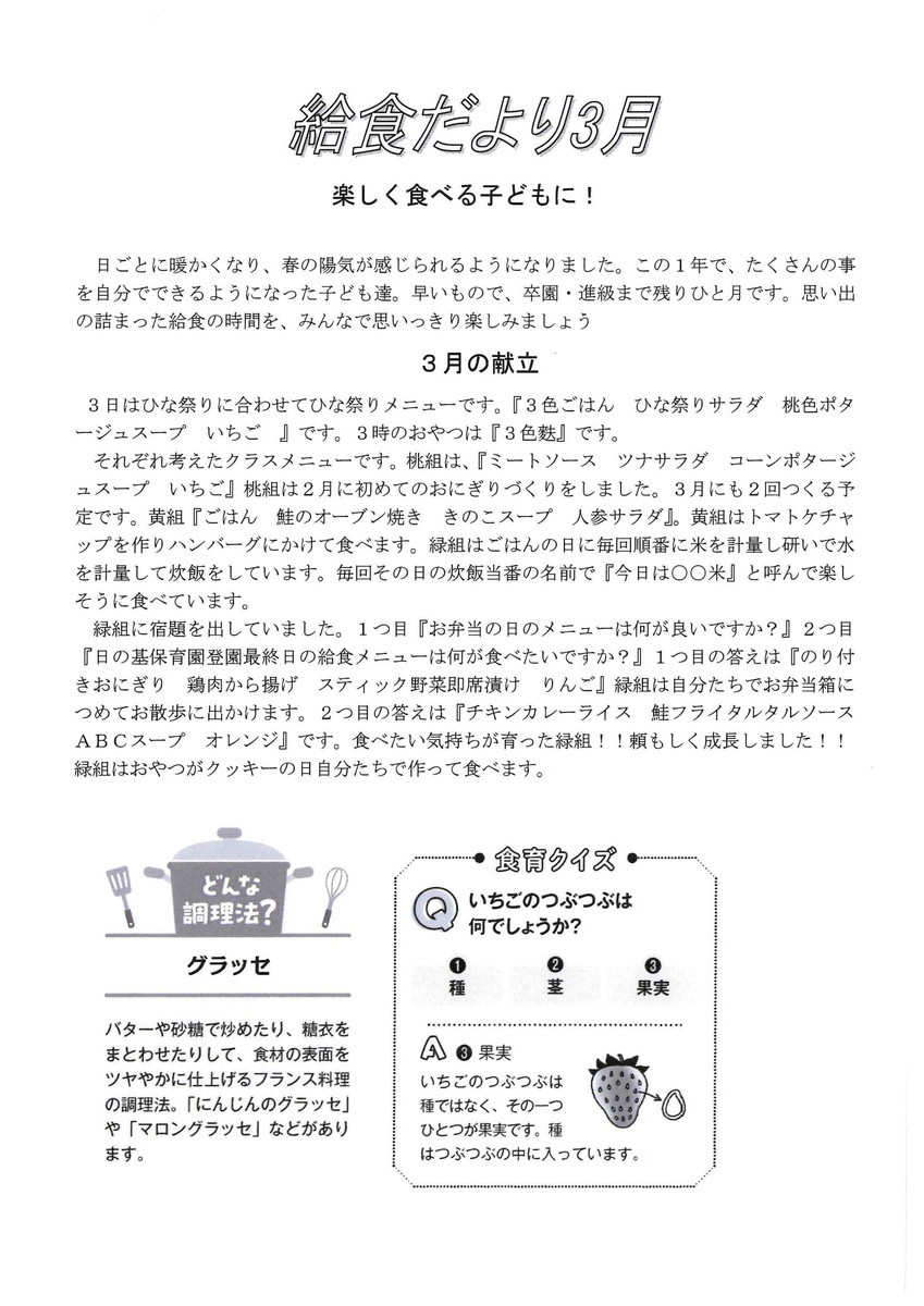 3月給食だより