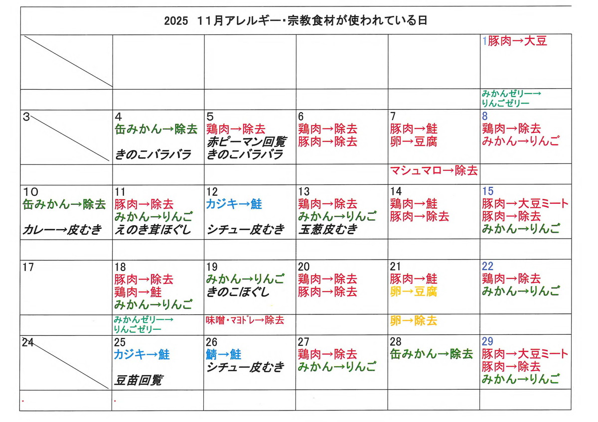 ■アレルギー・宗教食材が使われている日 PDF版は>>こちら