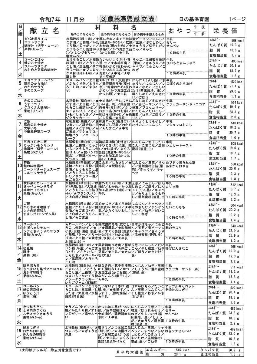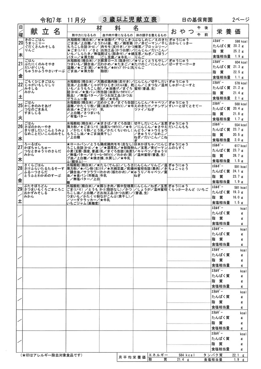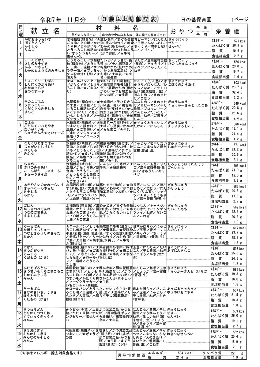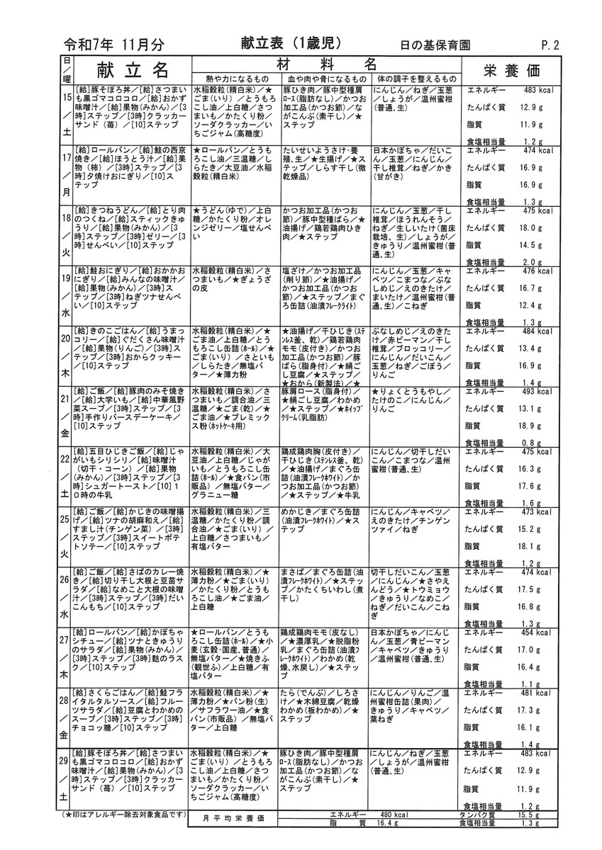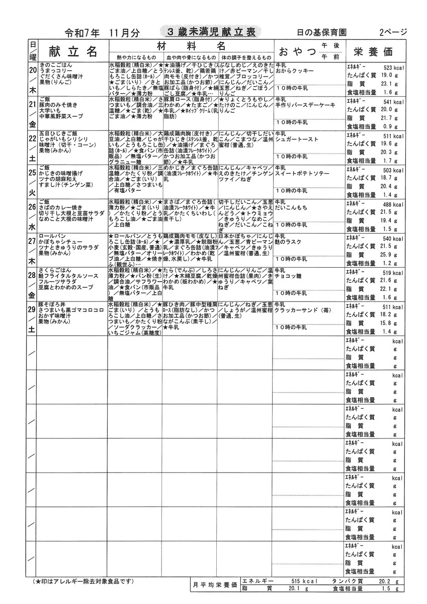 11月献立表