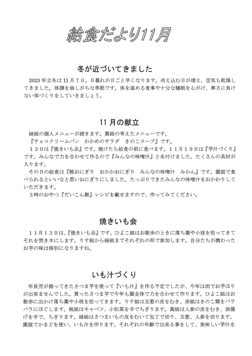 11月給食だより