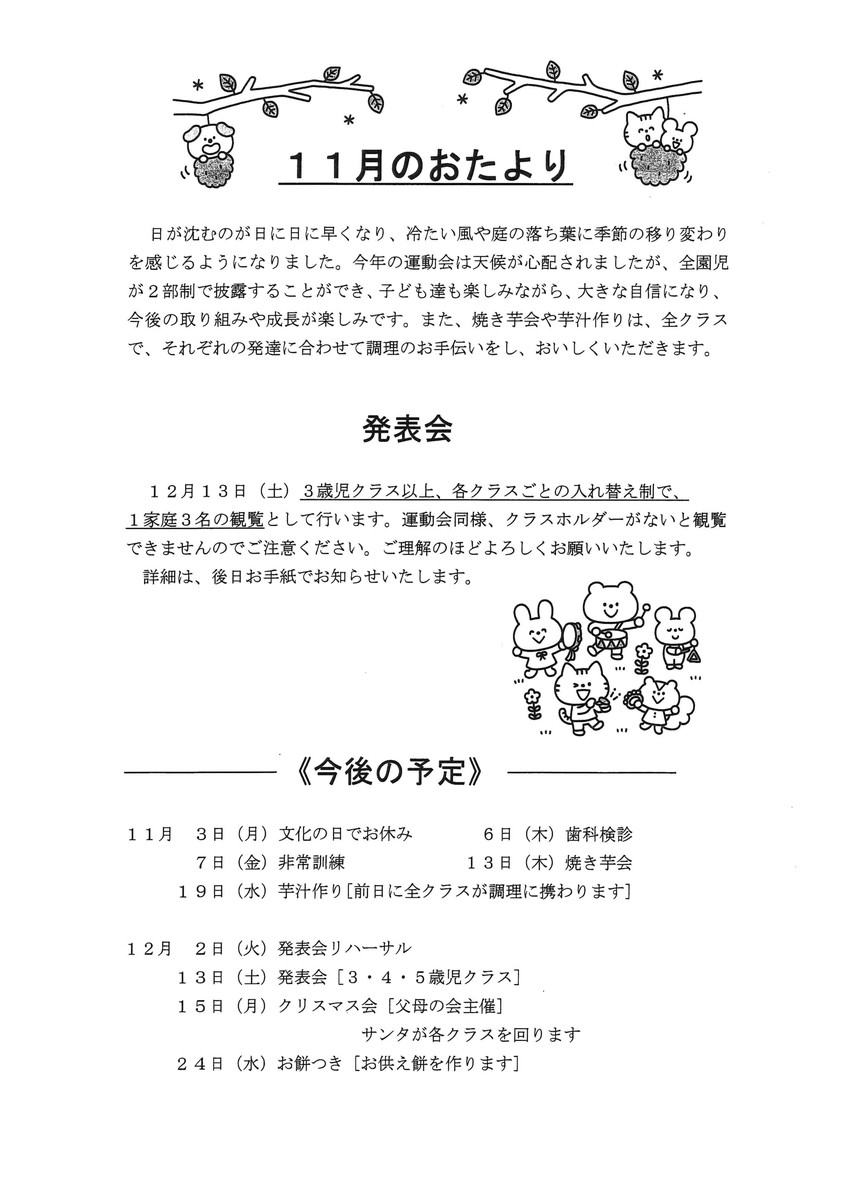 11月おたより