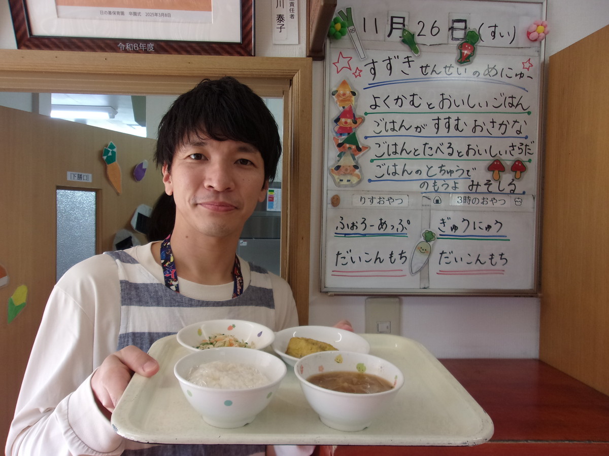 鈴木保育士はご飯が大好き!!みんなもごはんと交互に食べてほしいなとこのメニューにしたそうです。