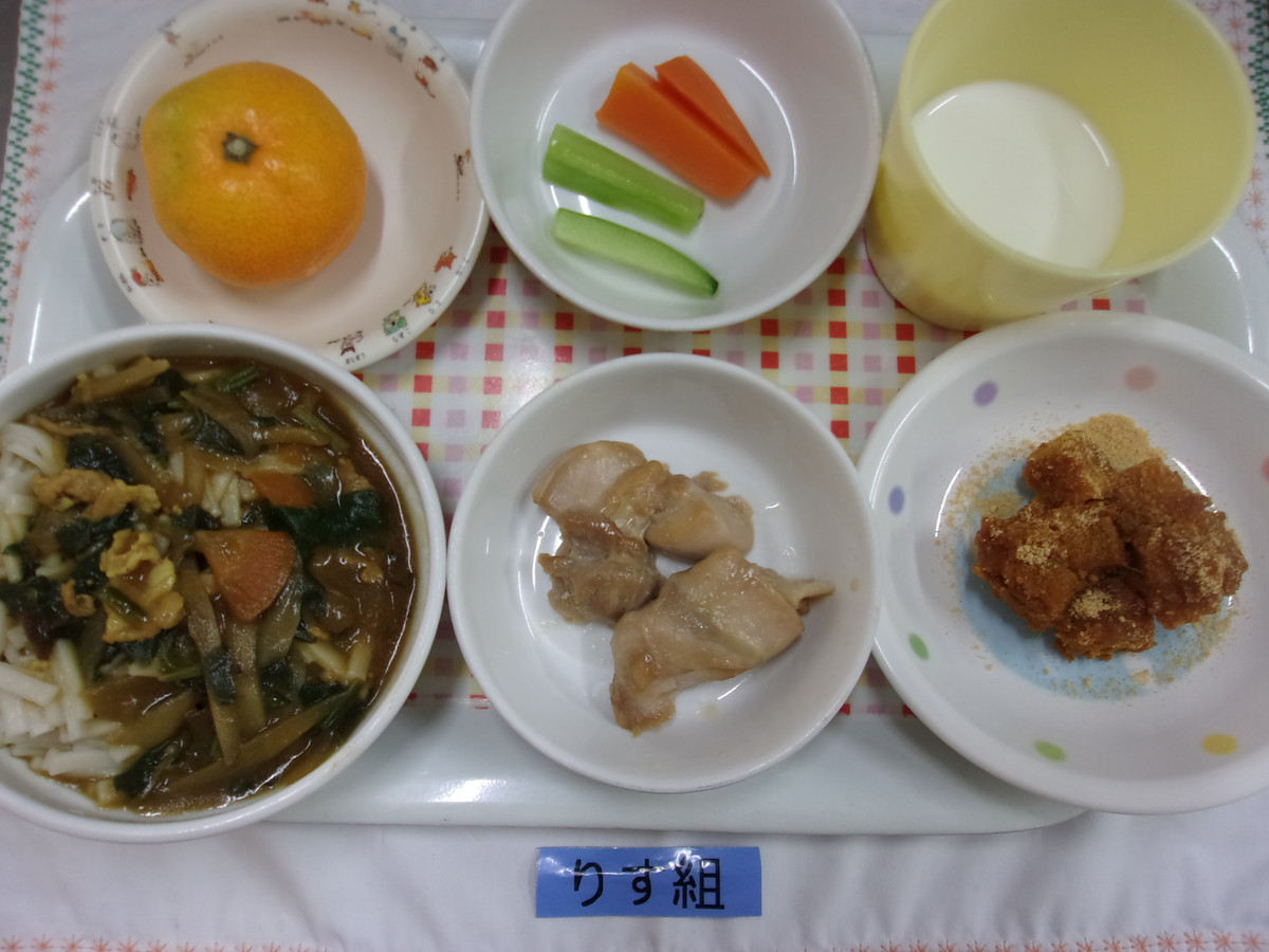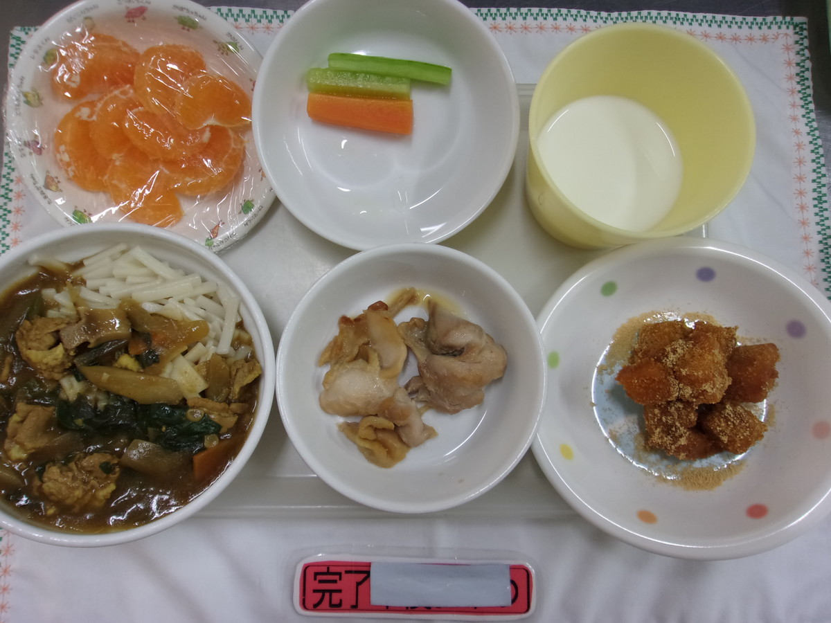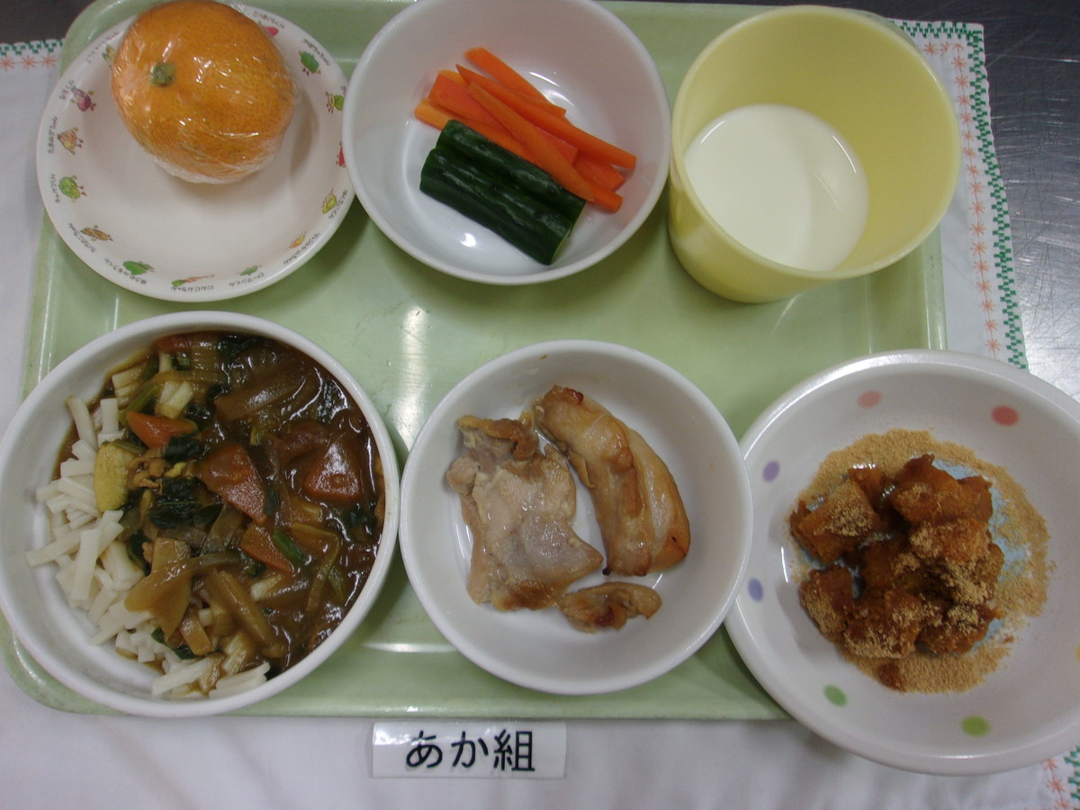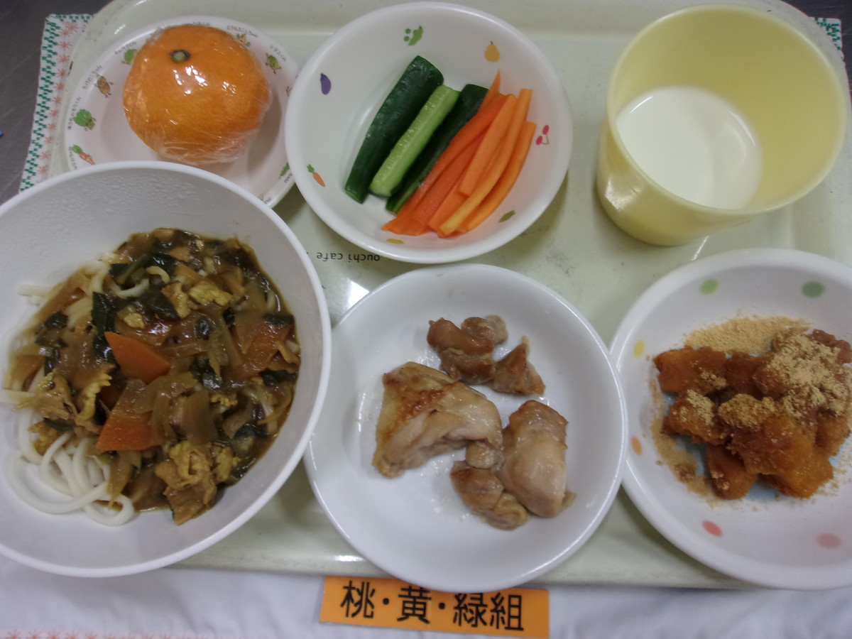 カレーうどん とりの照り焼き スティック野菜即席漬け みかん