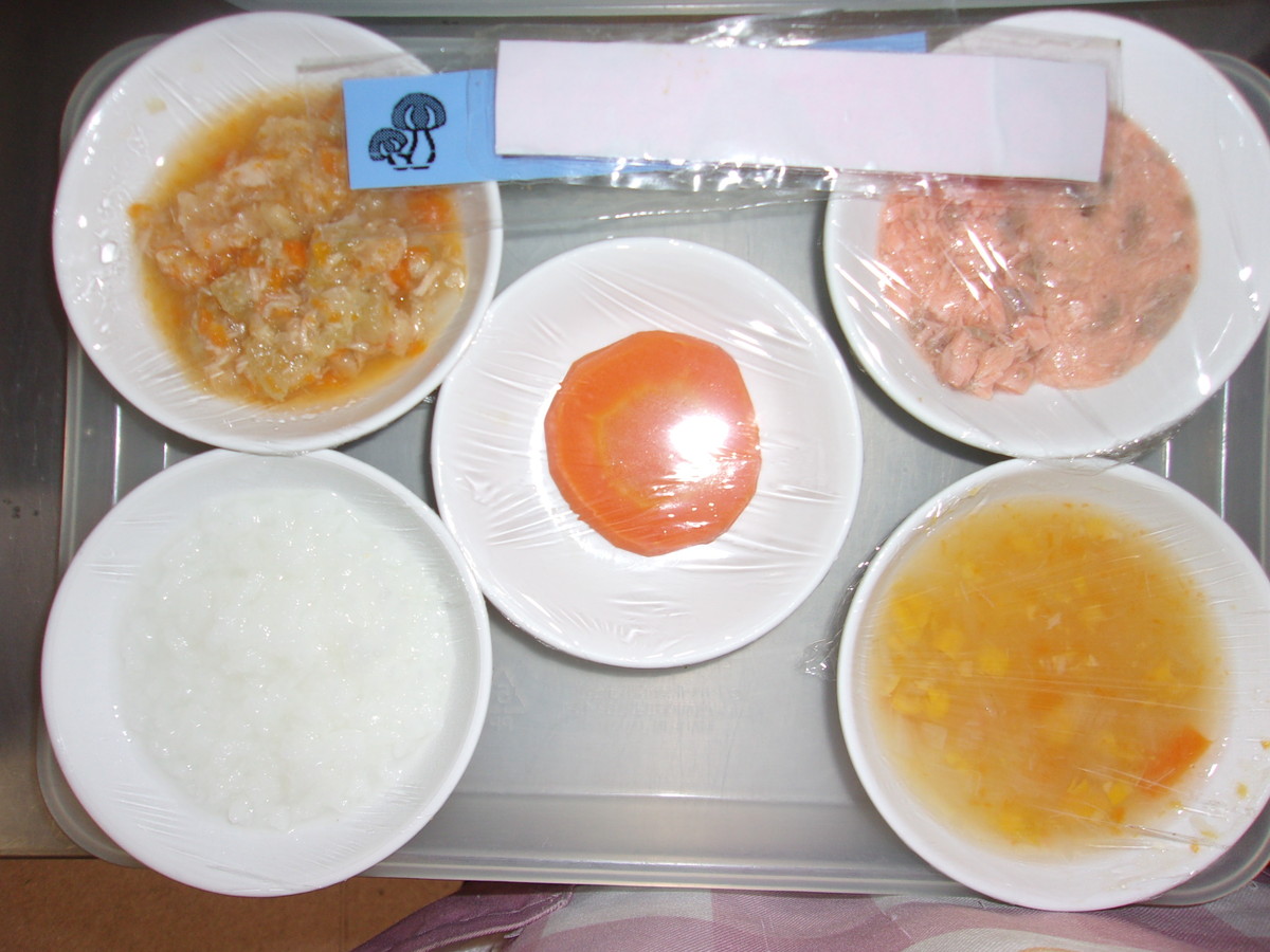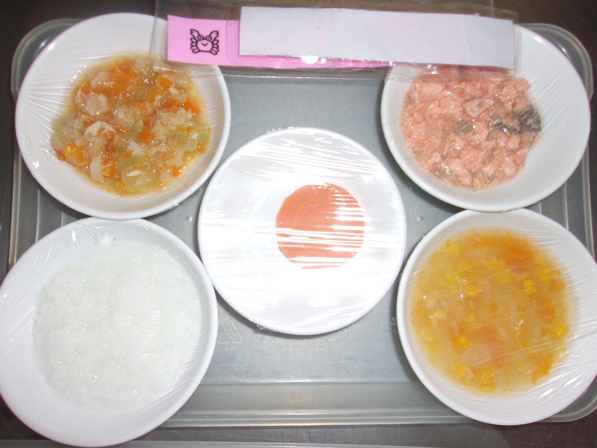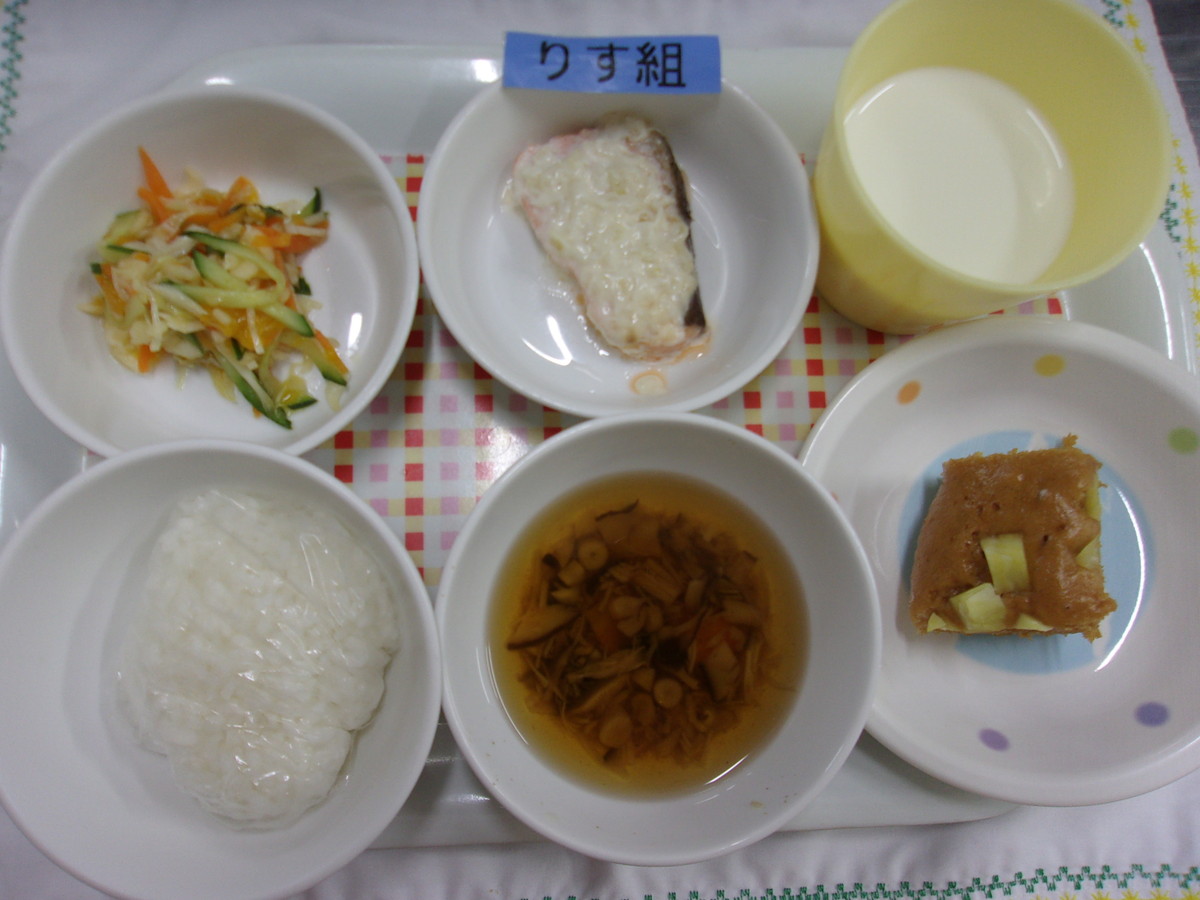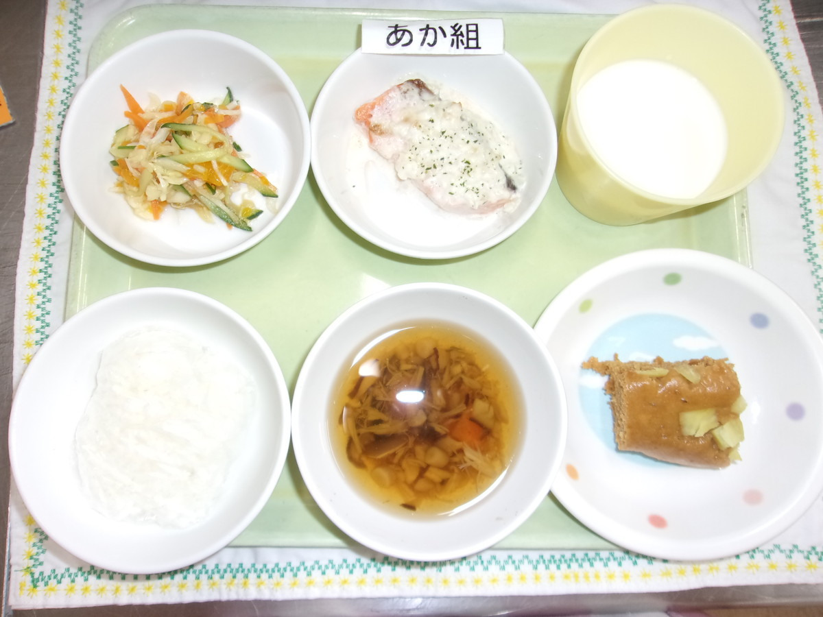 ごはん 鮭のマヨネーズ焼き 野菜スープ フレンチサラダ