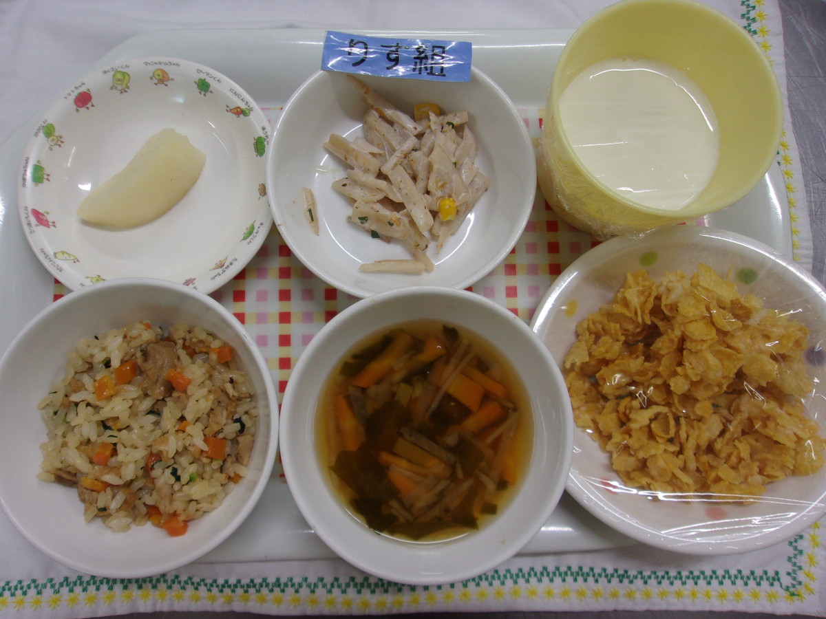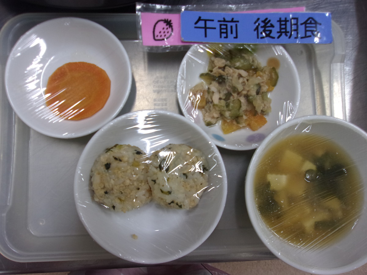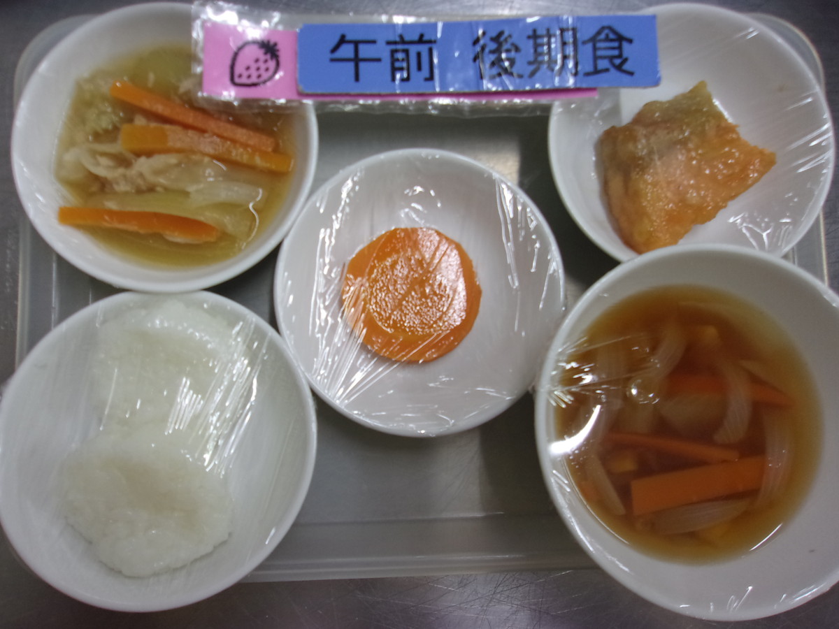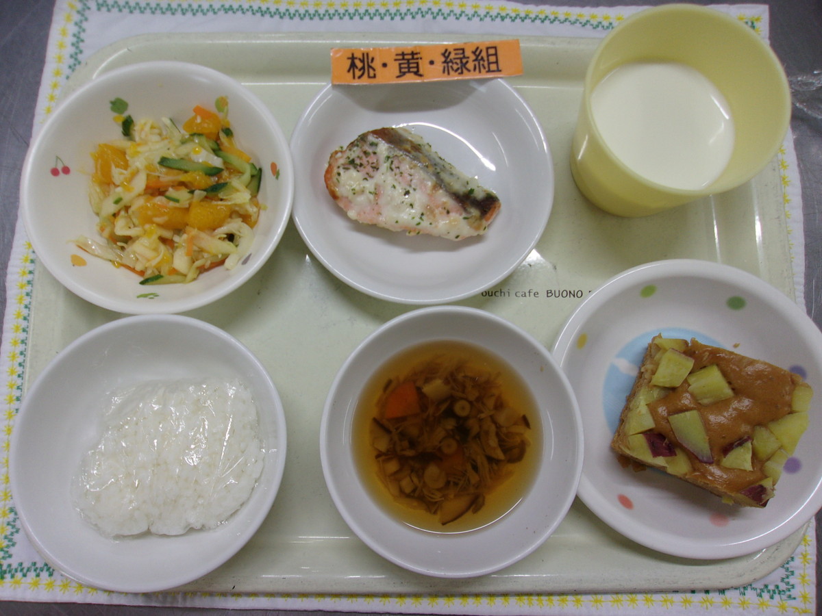ごはん 鮭のマヨネーズ焼き 野菜スープ フレンチサラダ