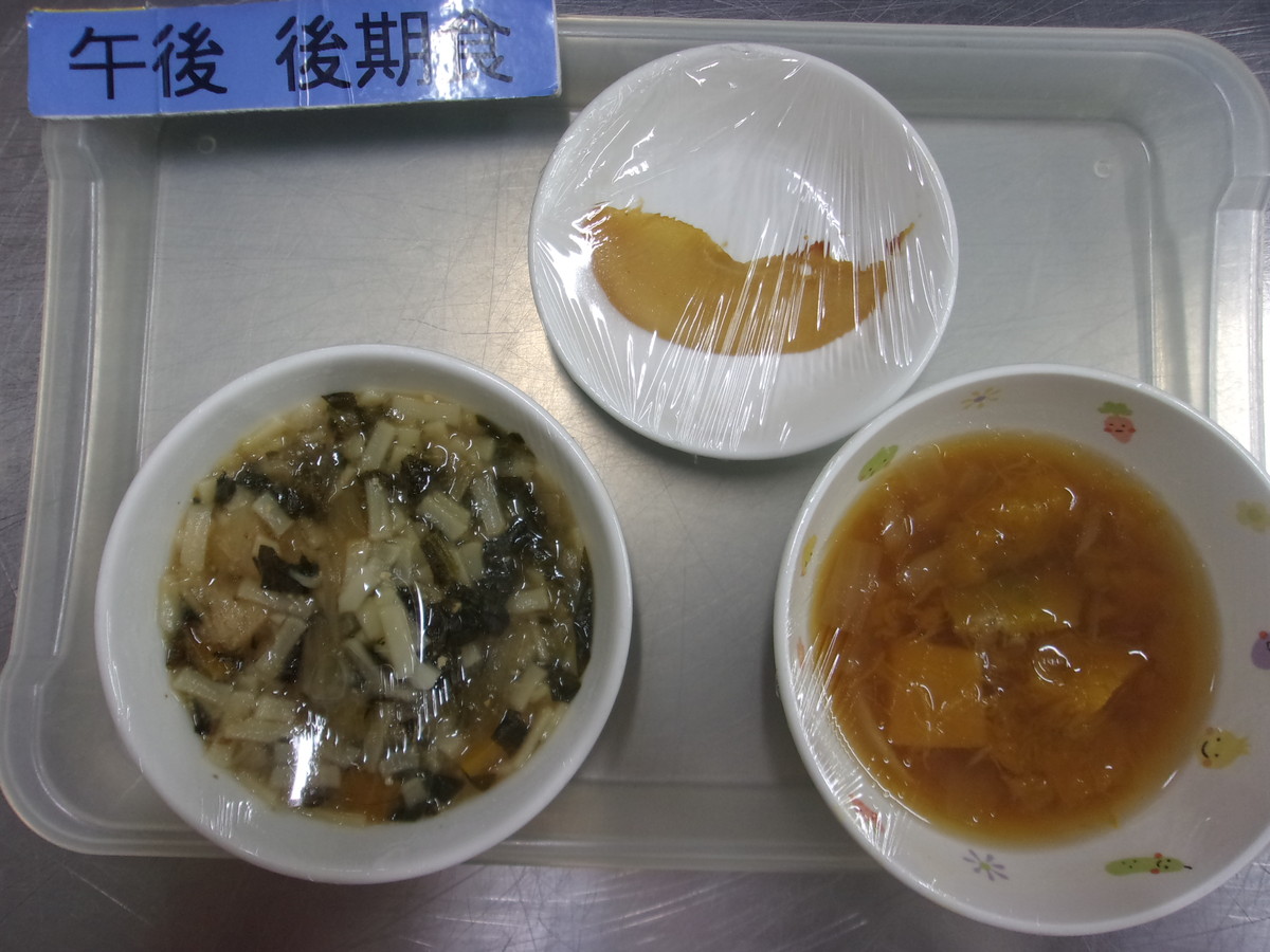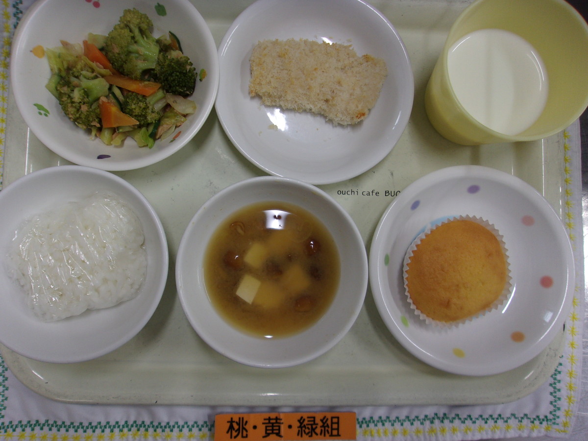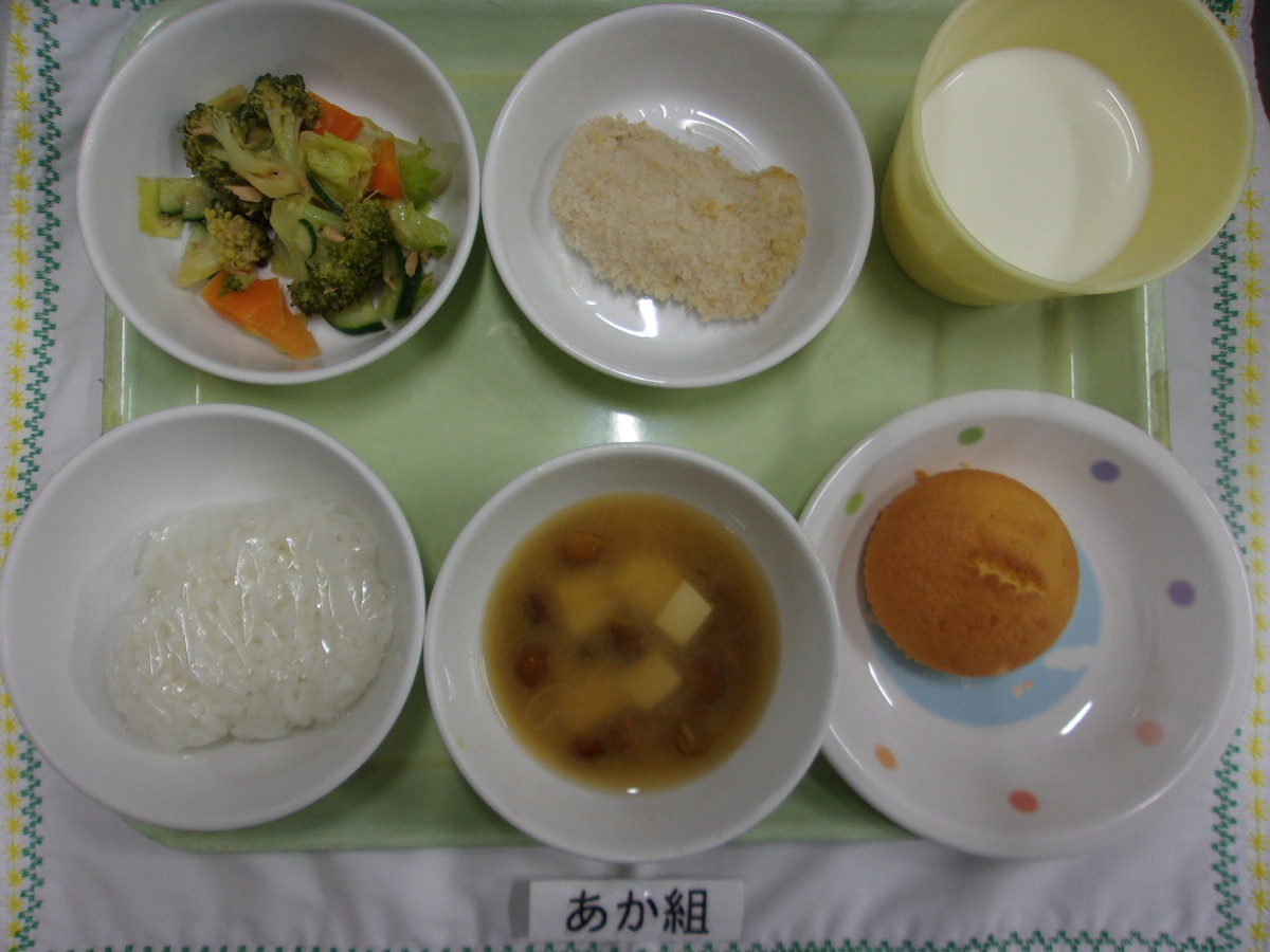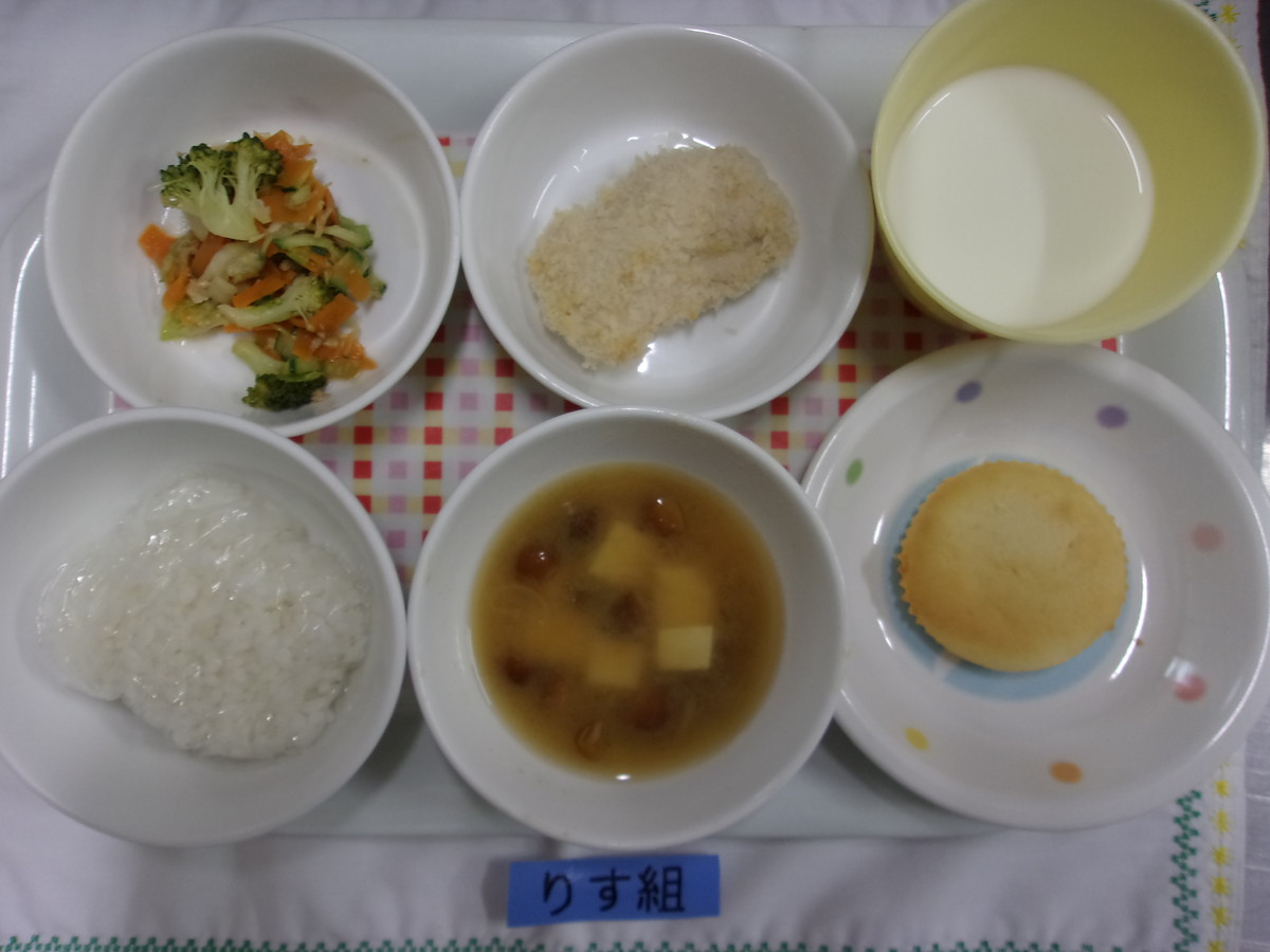 3時のおやつは 牛乳 さつまいも入り黒糖蒸しパン